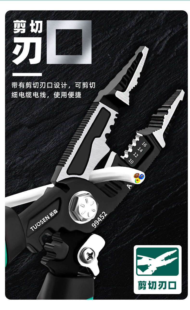 tuosen nine-in-one multi-function pliers electrician pliers crimping wire stripping pliers wire cutting pliers cable wire cutting pliers nine-in-one electrician pliers [electrician recommended]
