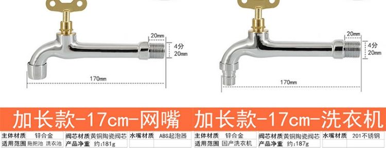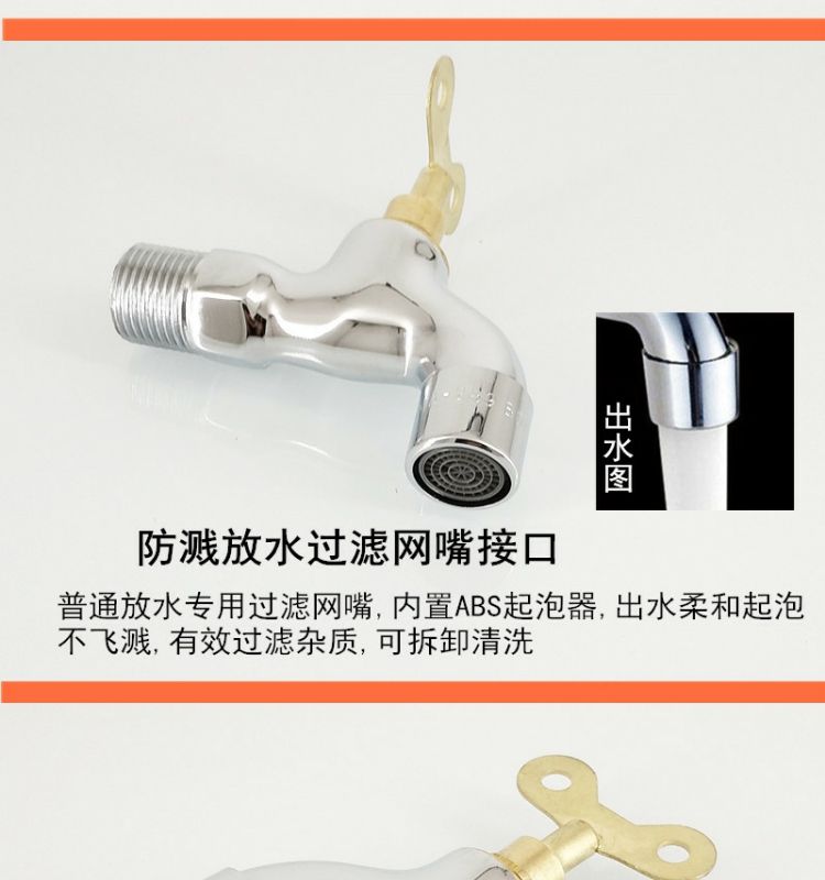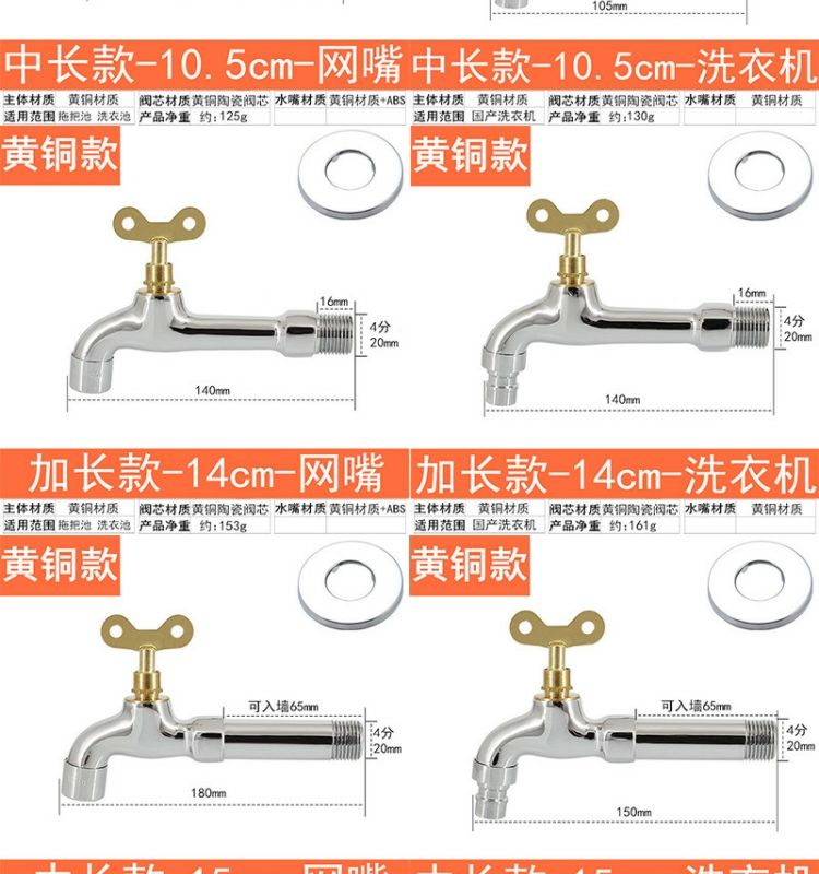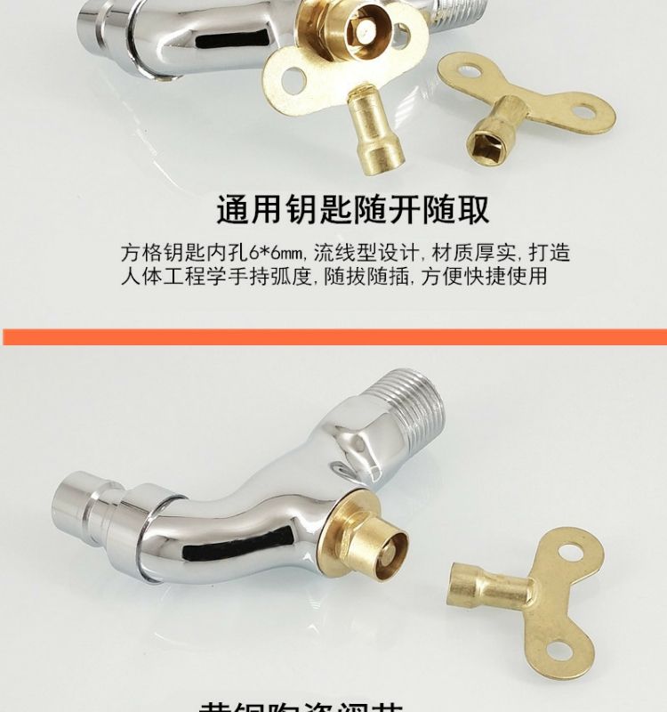 full copper body with lock faucet single cold fully automatic washing machine outdoor anti-theft with key extended mop pool brass body-9 cm- washing machine-regular key