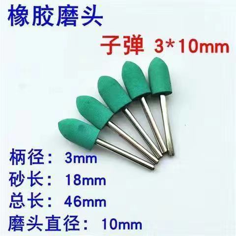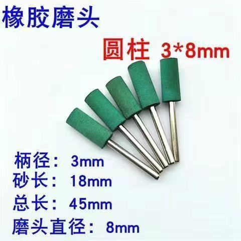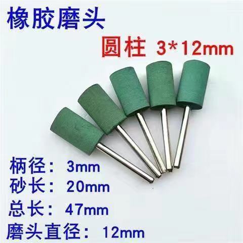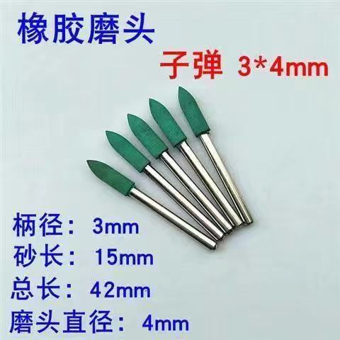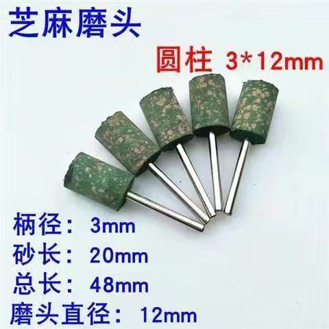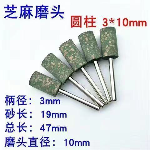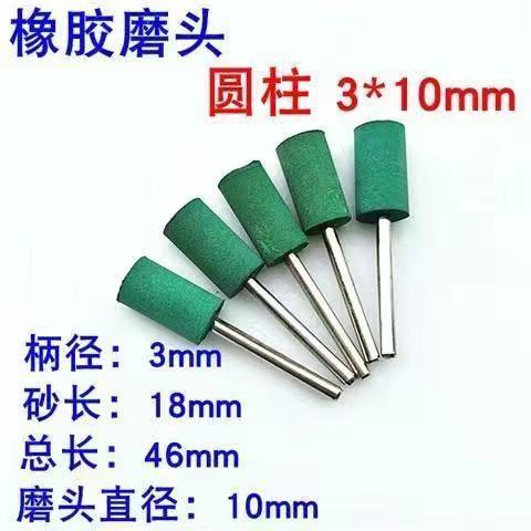 sesame grinding head rubber grinding head sponge grinding head rubber grinding wheel metal grinding and polishing rust removal grinding head handle 3 mm rubber-cylindrical 3 x4mm+10only installed