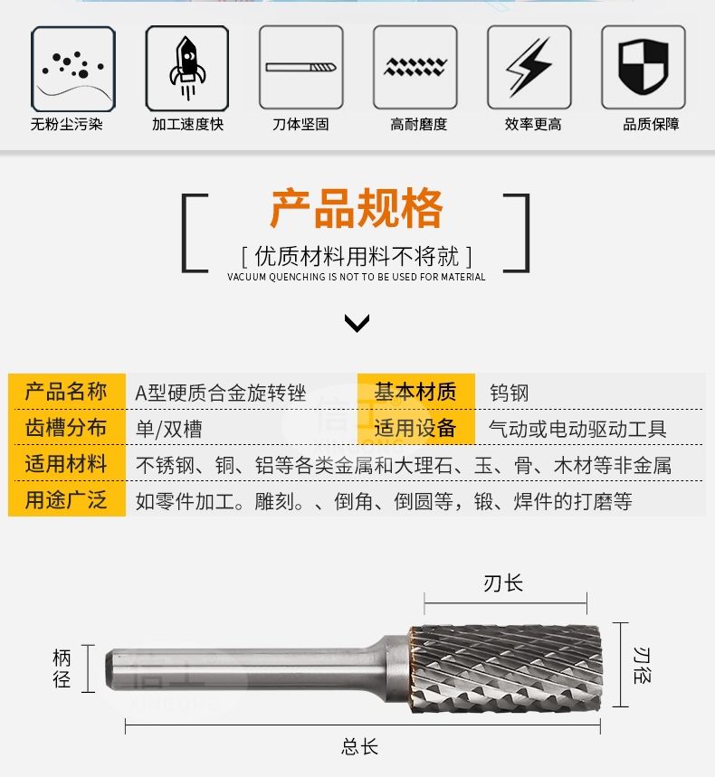 tungsten steel carbide rotary file tungsten steel grinding head metal woodworking carving rotary head cylindrical milling cutter electric grinding head A single slot A0616】