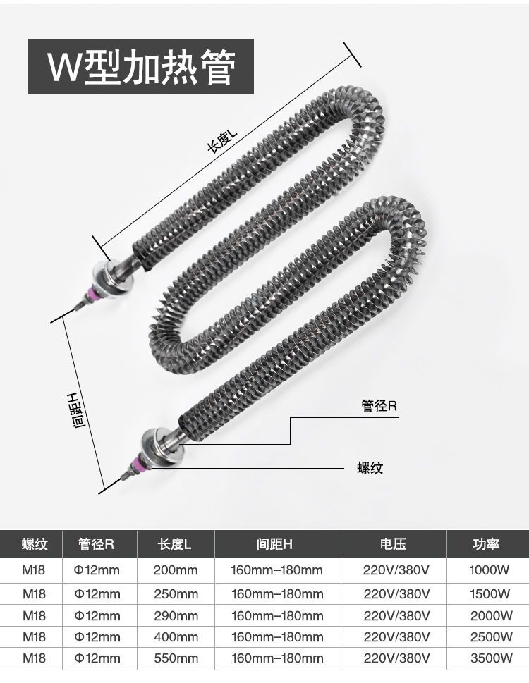 U type fin dry burning heating tube heat sink electric heating tube high power oven oven heating tube 380 V220Vu type 220 V 500W