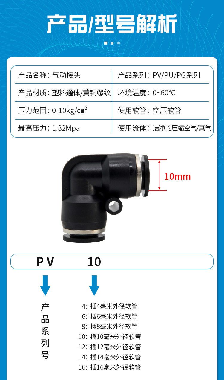 tracheal quick insert PU direct connection PG reducer PV elbow plastic quick connector PU4-6-8-10-12 black boutique +PU-04 direct