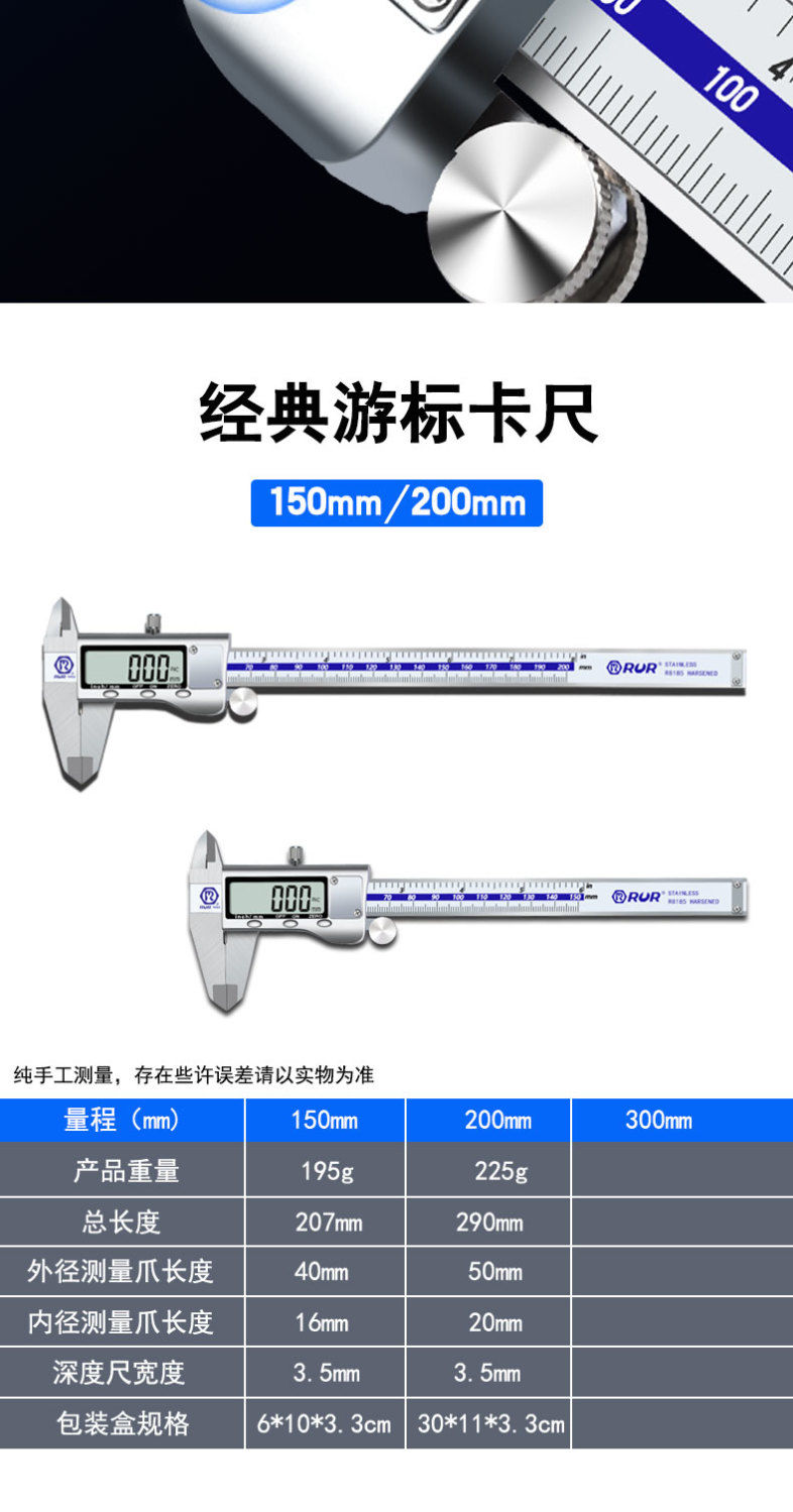 electronic vernier caliper high-precision digital display industrial-grade small-scale cultural and artistic high-oil standard caliper 0-300 mm stainless steel digital display 0-150 mm( buy one get three free)
