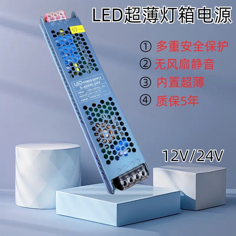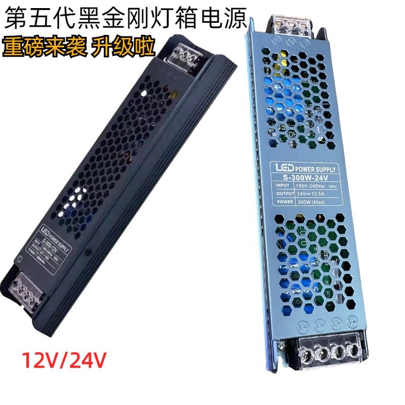 led light with switch power supply black king kong transformer 220 to 12 V24V light strip transformer silent power supply dedicated 24 V 400W ultra-thin black diamond