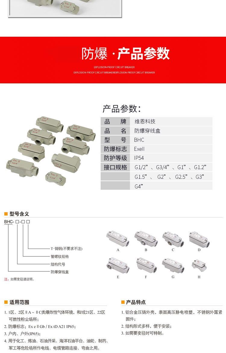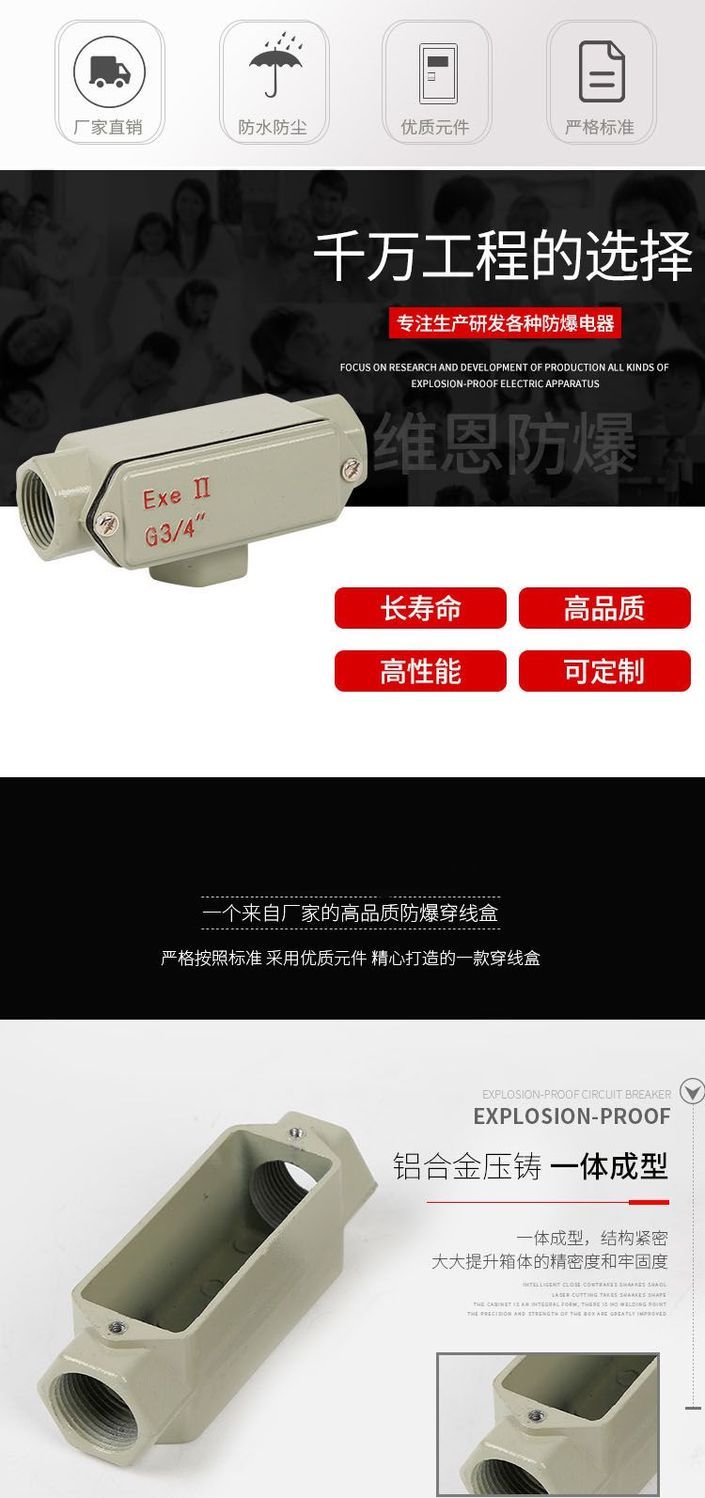 explosion-proof wire box BHC6 three-way junction box DN20directwantong yuanbao explosion-proof waterproof junction box four points dn15+direct