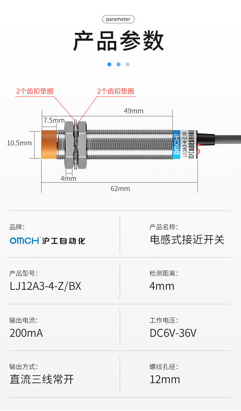 hugong inductive proximity switch LJ12A3-4-Z/BX sensor dc three-wire NPN normally open metal induction [classic] non-flush LJ12A3-4+Z/BX【 dc three-wire NPN normally open
