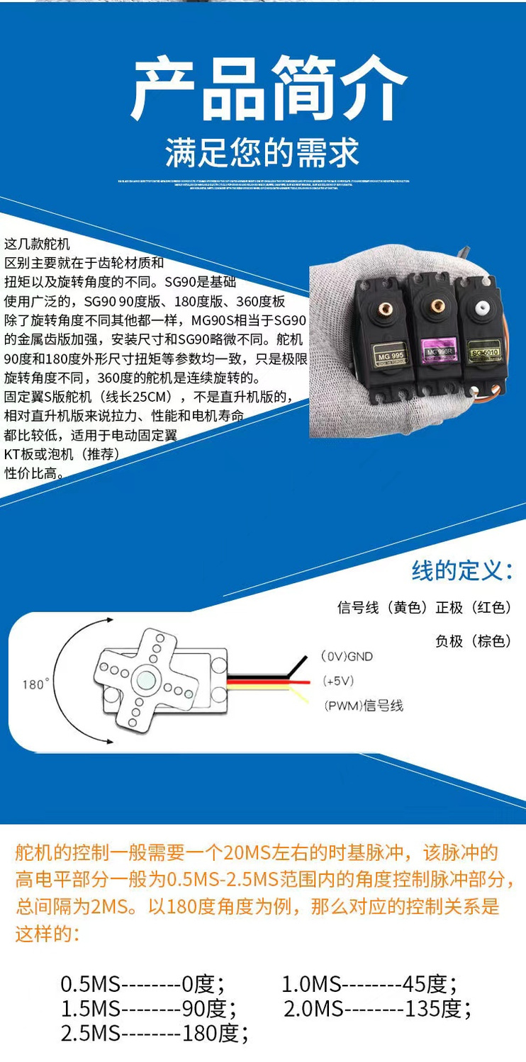 MG995 996R metal standard servo 180 degrees 360 degrees SG90 MG90s servo rudder model aircraft full copper gear SG90 9 classic servo 180 degrees