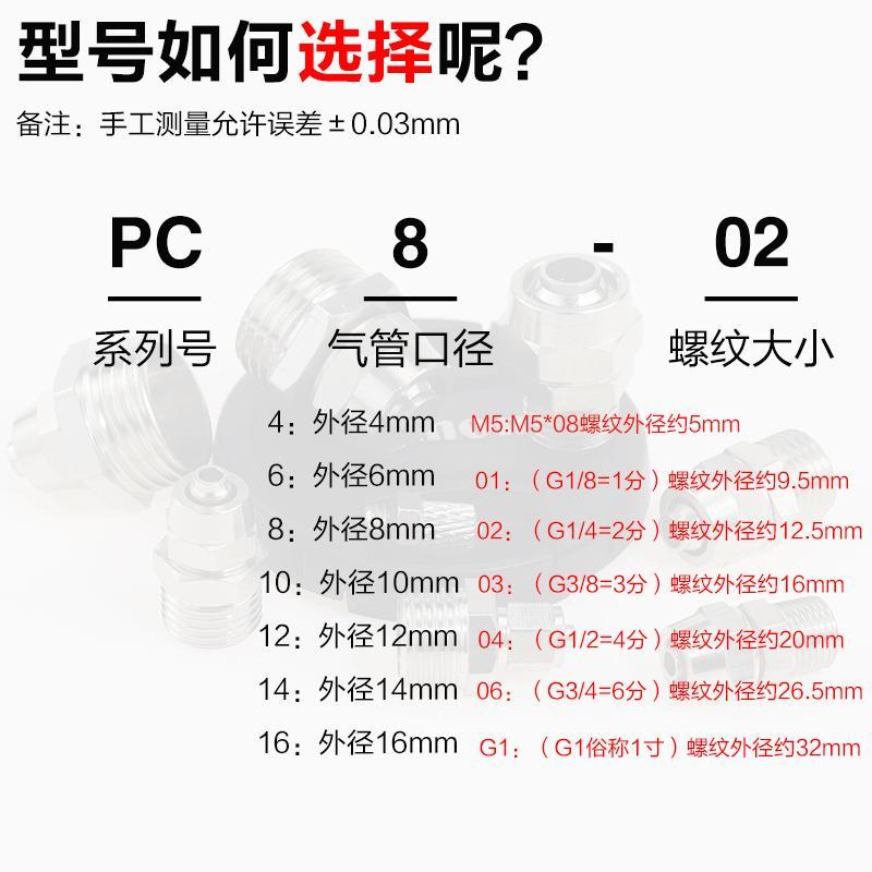 pneumatic quick-release connector thread straight PC8-02 lock mother trachea quick copper connector 6 8 10 12 16 mm quick twist PC4-M5