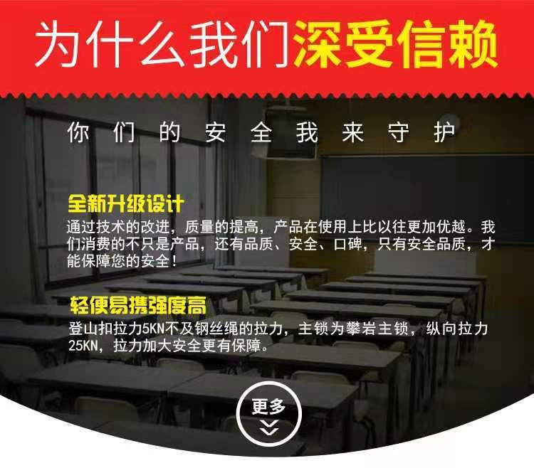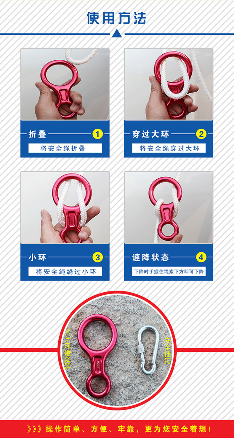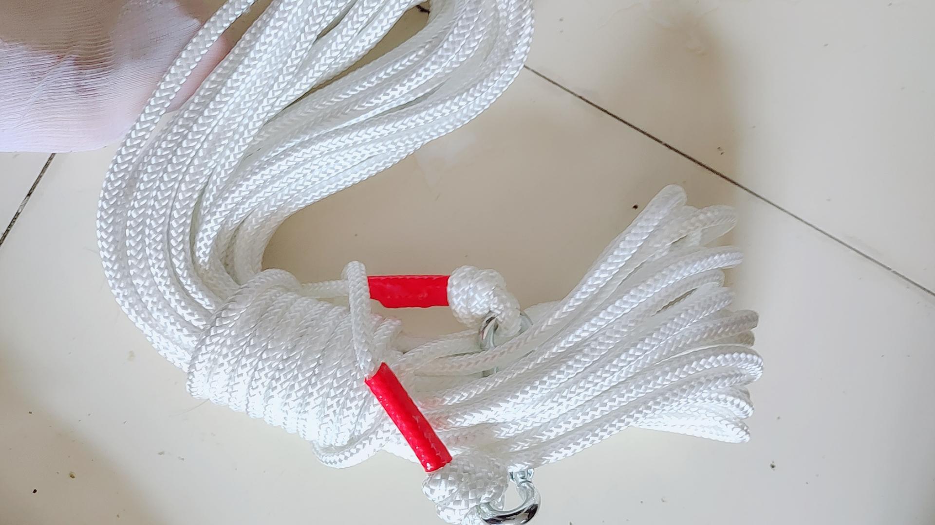 居住三楼以上的家庭备几根这样的含钢丝的绳索是必须的,它结实一负重量大,又柔软不扎手,安全而可靠。这个卡口可以用罗纹形式固定,绝不会滑脱,巩固了安全的可靠性,一次很放心的购买。
