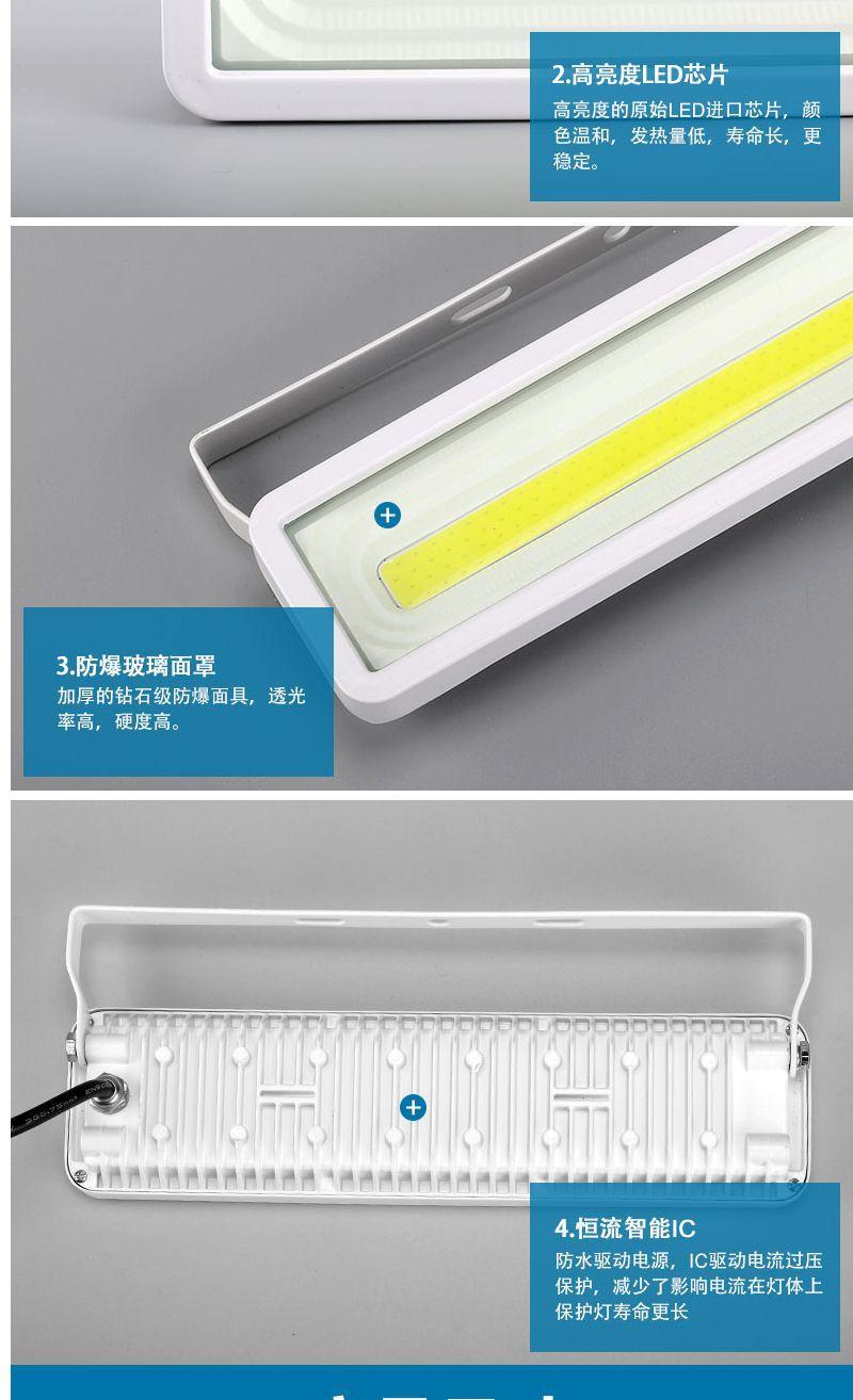 floodlight led spotlight outdoor waterproof 50 W long strip light super bright outdoor light floodlight open air lighting searchlight 50 W black shell white light