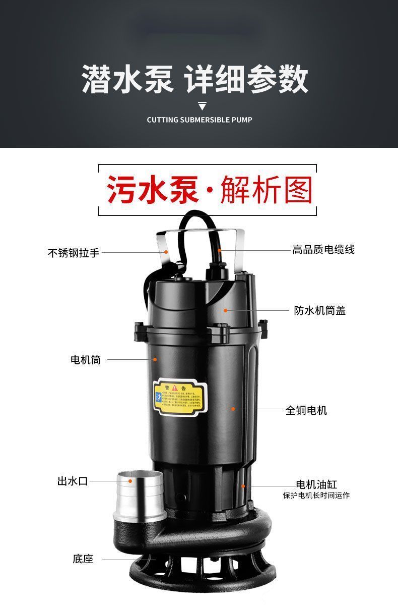 water pump cutting sewage pump pumping feces biogas slurry sewage pump septic tank high-power cutting pump 550 watt alloy steel knife 1 inch 5 meter pipe