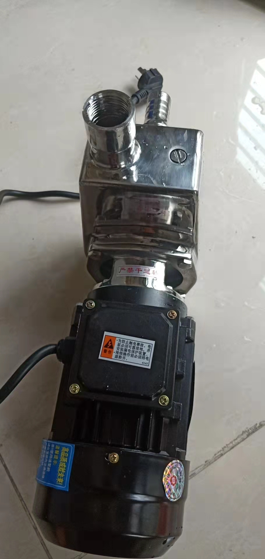 货已收到,包装有损坏,拆开试机没问题,试抽水能力看样子应该还不错,没正式使用,以后追评,电源线太短,只有30公分,用的时候很不方便,没有电源开关,停机只能拔插头,花大几百买的机器,四个底座螺丝都舍不得配,还得自己去找几个才行