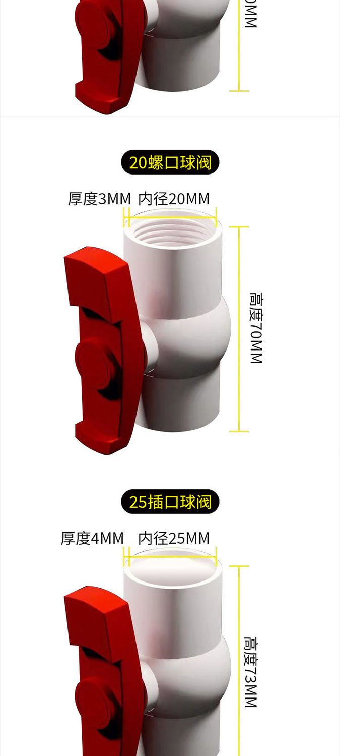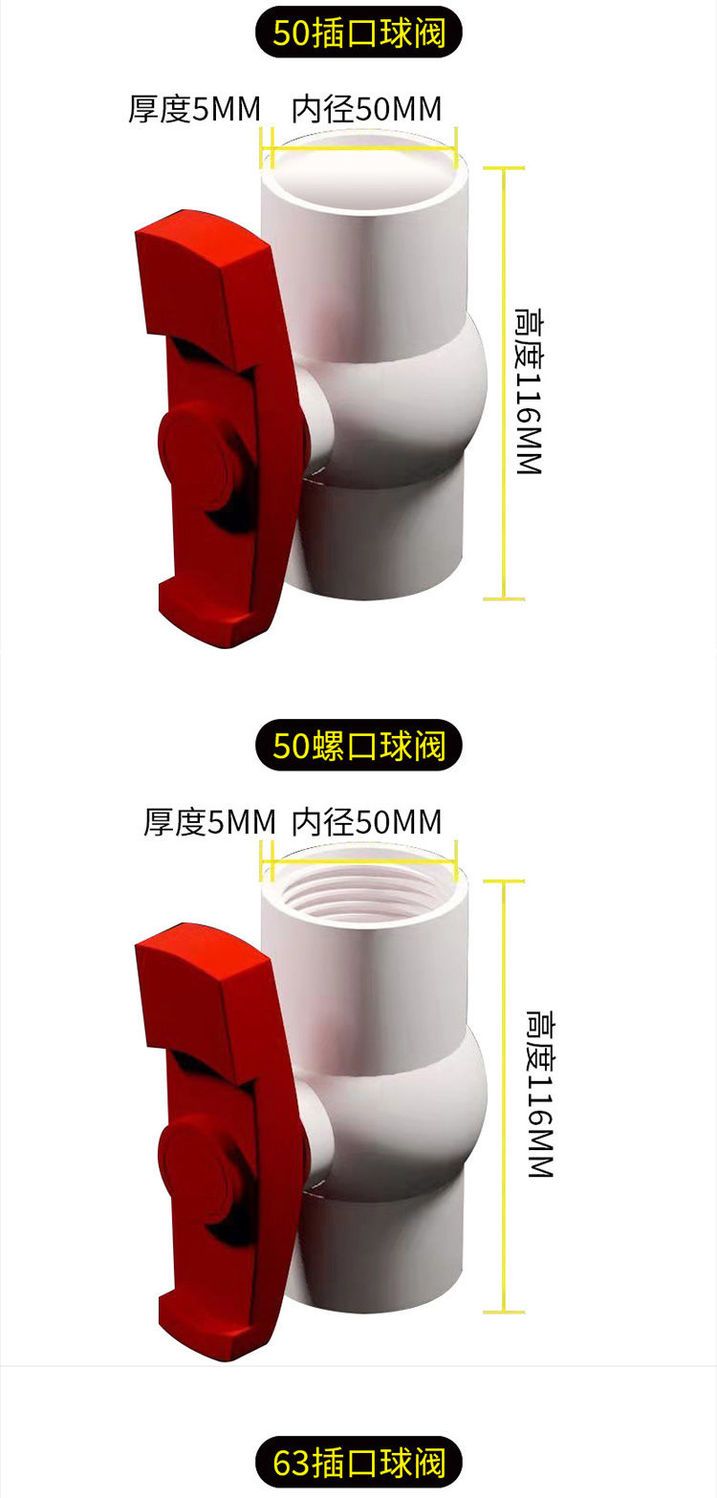 pvc ball valve 20 25 32 40 50 63 75 90 socket threaded internal thread water pipe switch plastic valve 20 socket ball valve (adhesive 4 points)