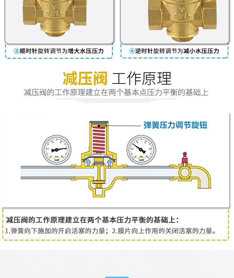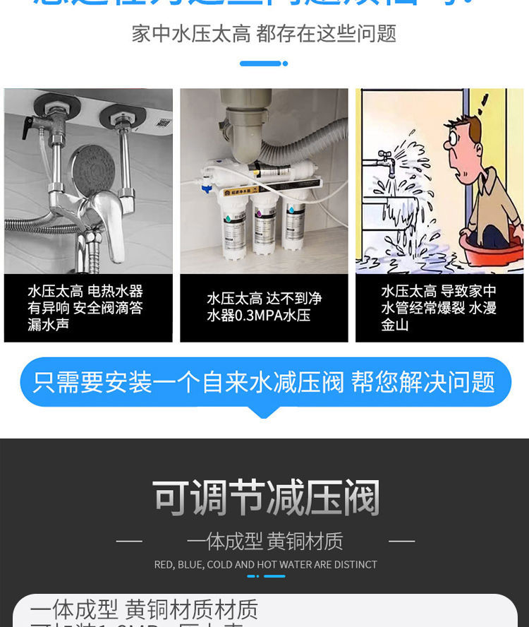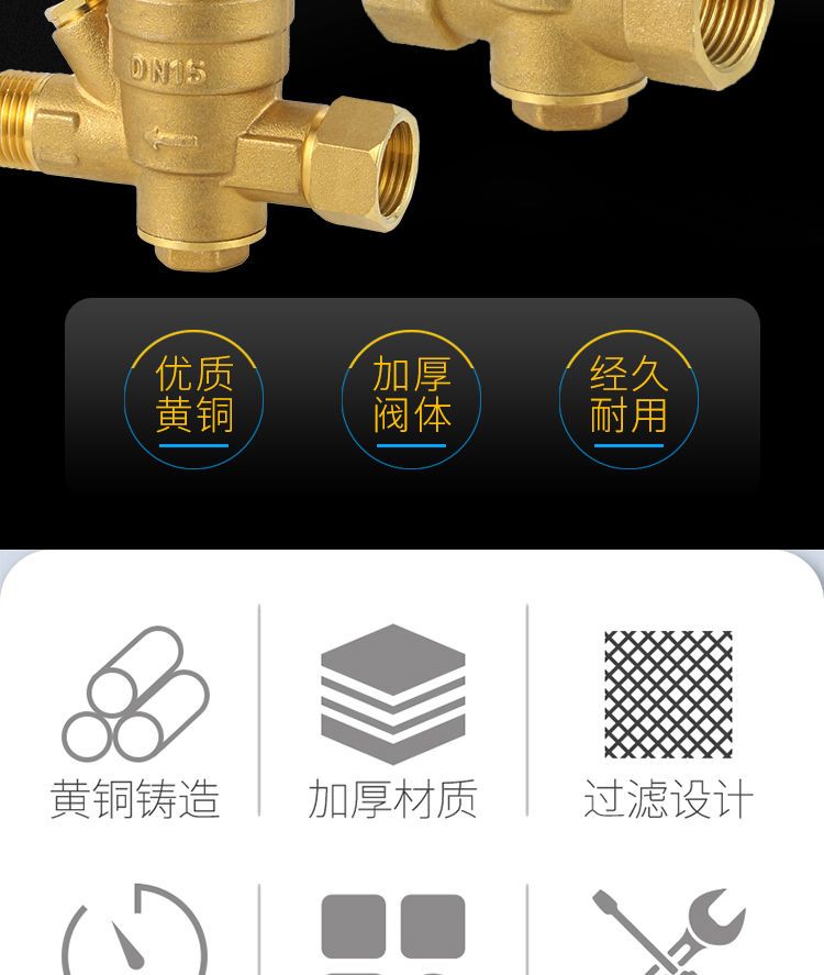 tap water pressure reducing valve pipe thickening brass pressure reducing valve water heater adjustable water purifier DN4 6 points 4 points /DN15 pressure reducing valve (medium thickness)