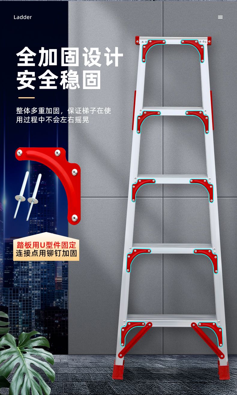 ladder folding ladder thickened indoor herringbone ladder staircase telescopic ladder moving step ladder multifunctional aluminum alloy double reinforcement model 1.0 - [sf delivery]