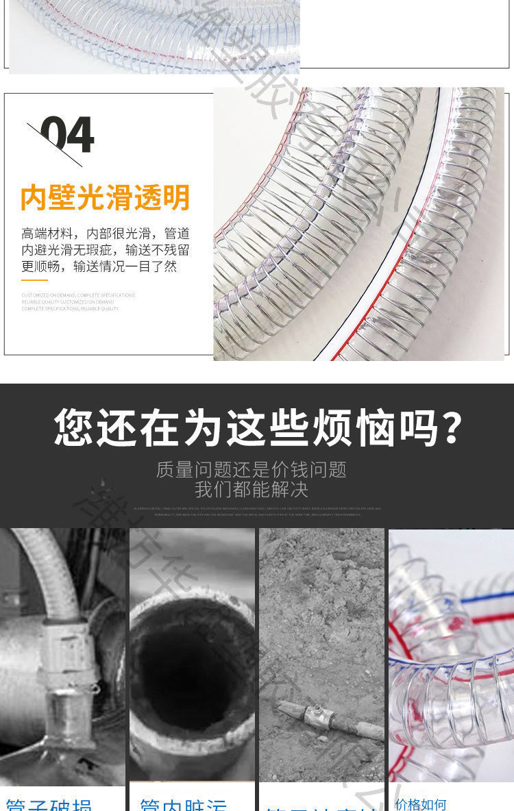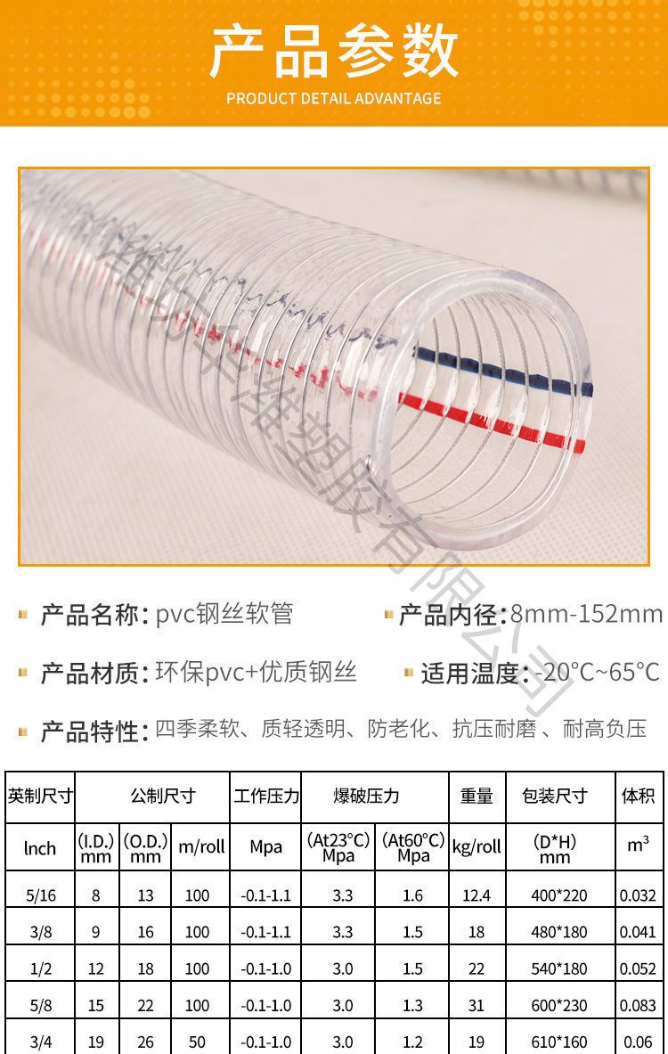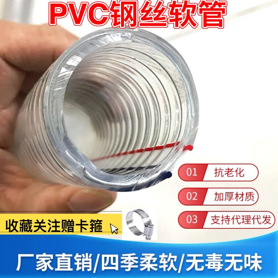 PVC steel wire hose transparent oil resistant antifreeze anticorrosive tasteless environmentally friendly four seasons soft thickened 1 inch plastic water pipe inner diameter 13 MM((a clamp will be provided for every 5 meters)