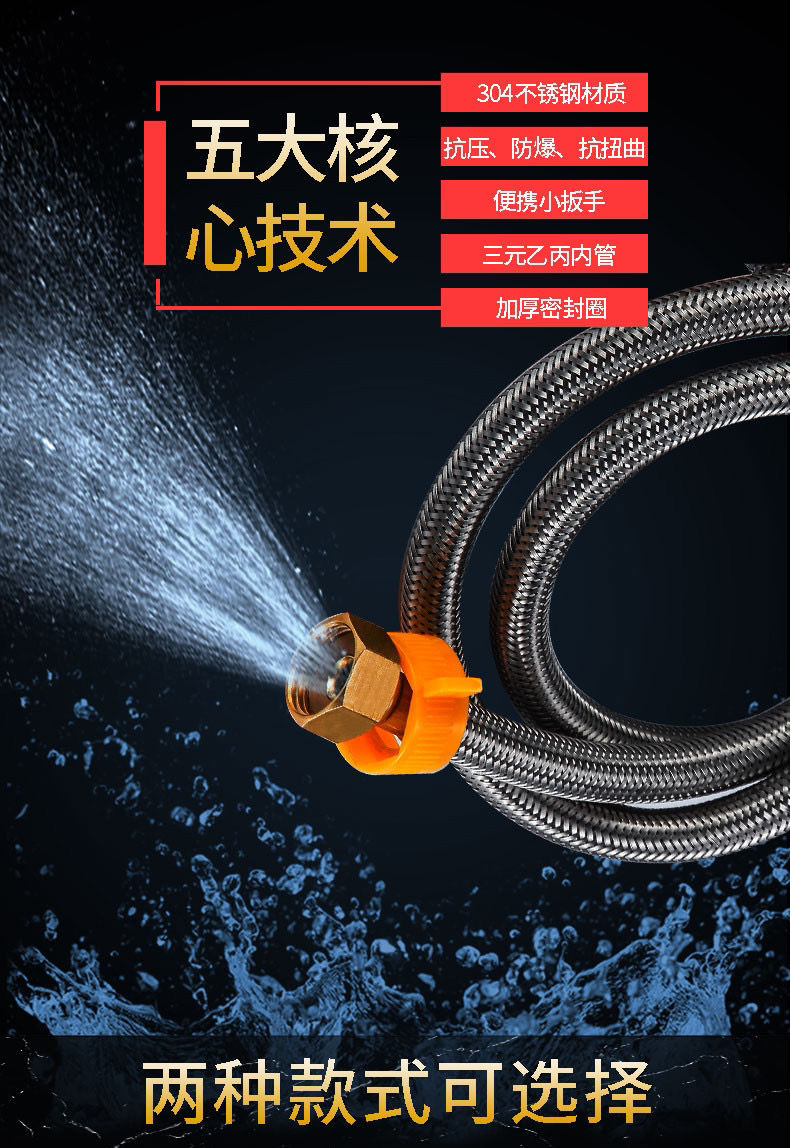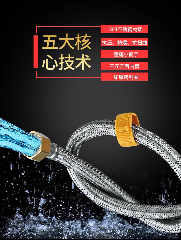 304stainless steel braided hose water heater toilet high pressure explosion-proof 4 points hot and cold extended water inlet hose connecting pipe 304 braided steel cap explosion-proof model (30-year warranty) +10centimeter