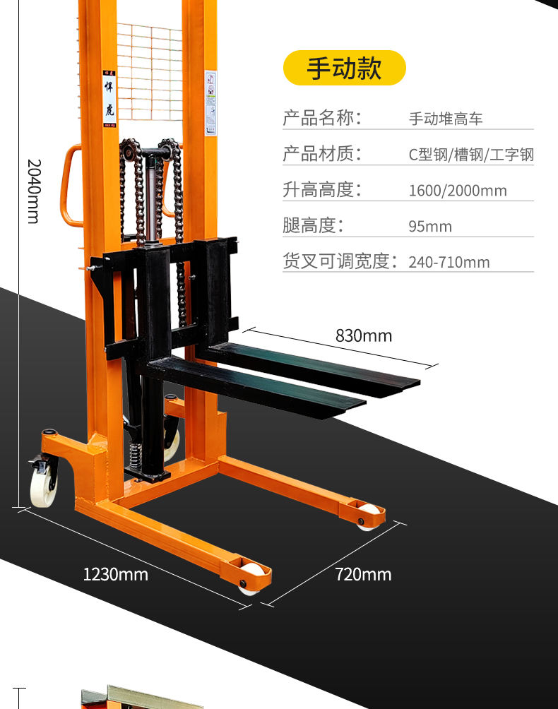 forklift manual hydraulic truck electric lift truck lifting truck lift truck stacker electric forklift lift truck handling 1 ton electric lifting 1.6 meters thickened type