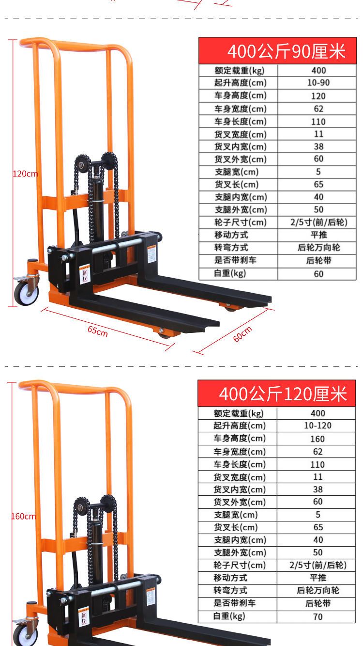manual mini forklift small lifting truck stacker hydraulic handling pallet truck manual stacker straight wheel fork model - 200 kg height 0.9 m