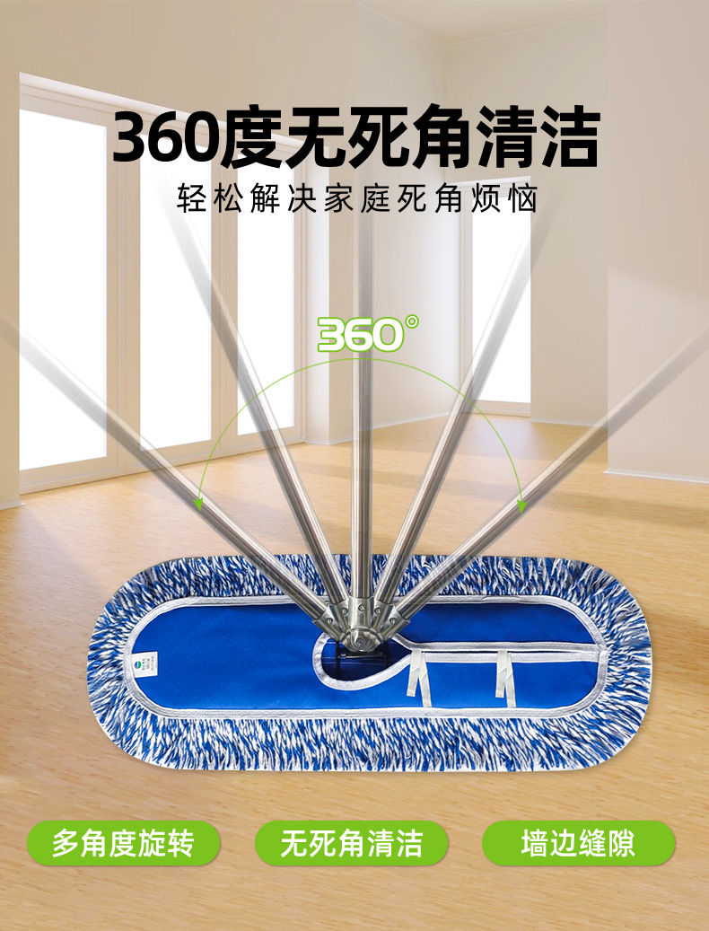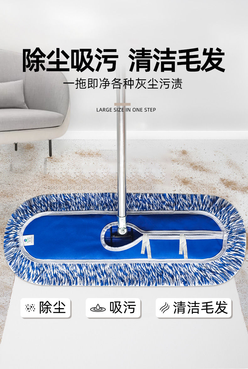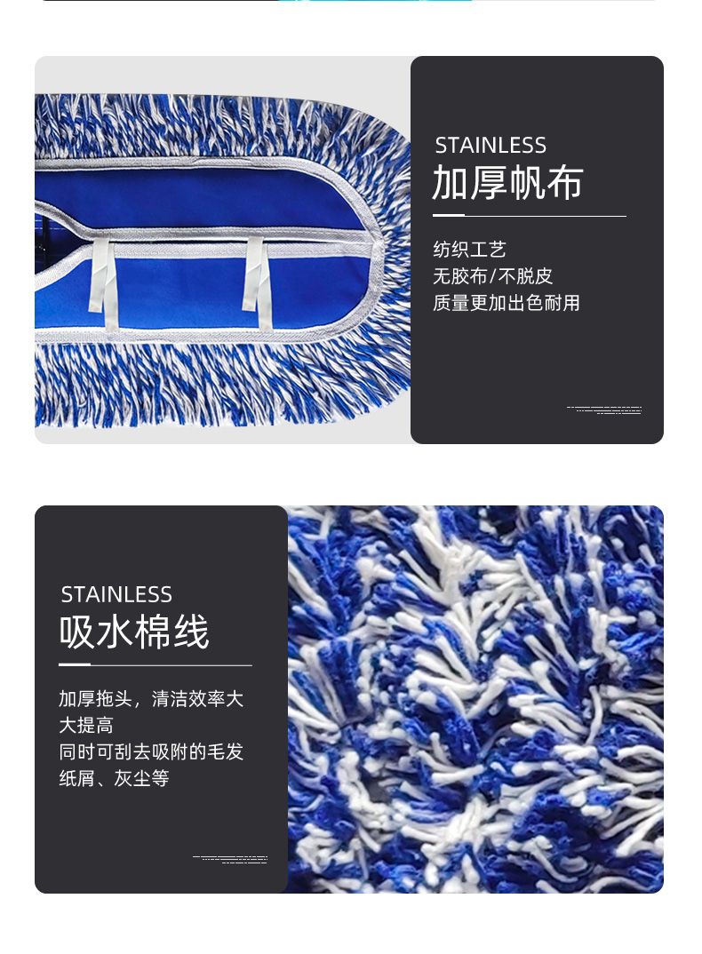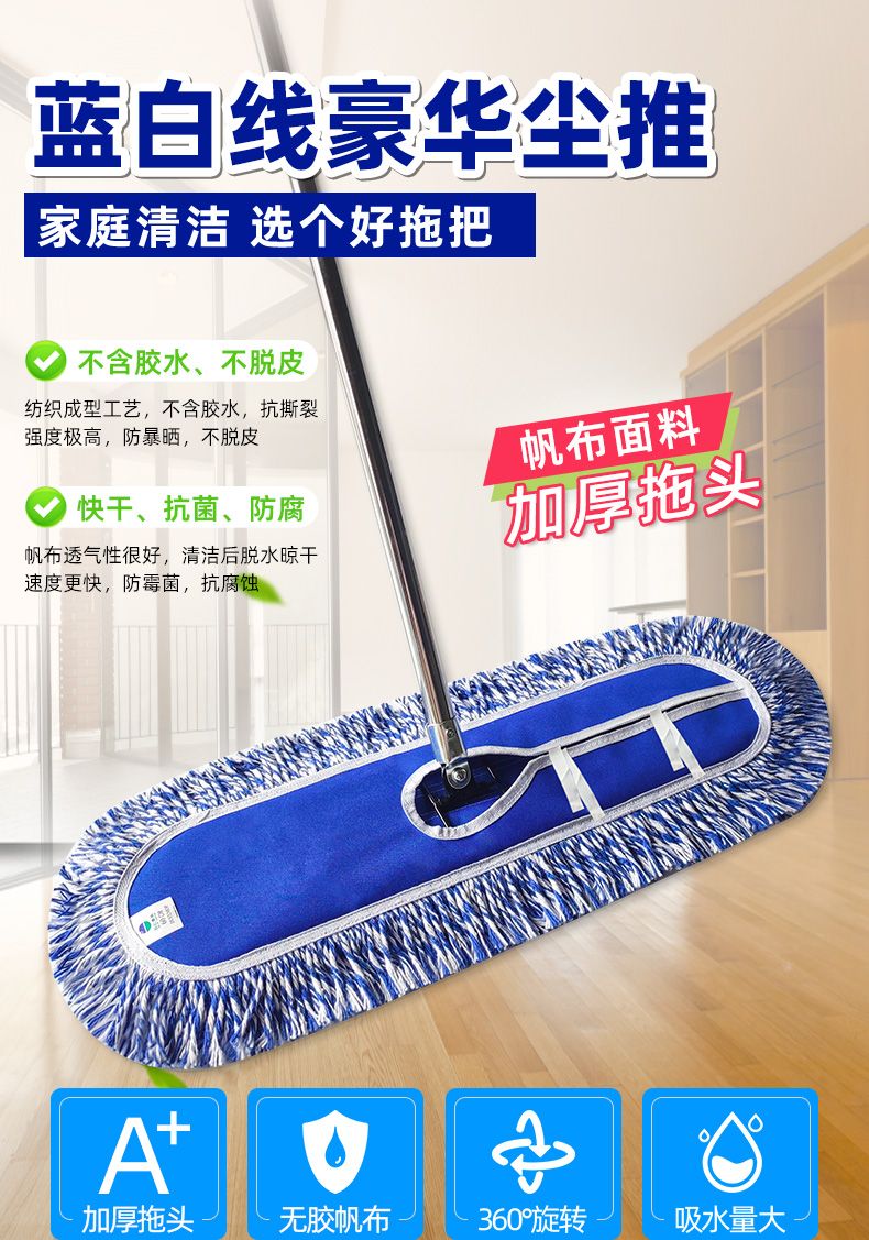 blue and white line thickened canvas screw luxury dust push mop mop extension rod large row mop canteen property thickened 40 CM complete set