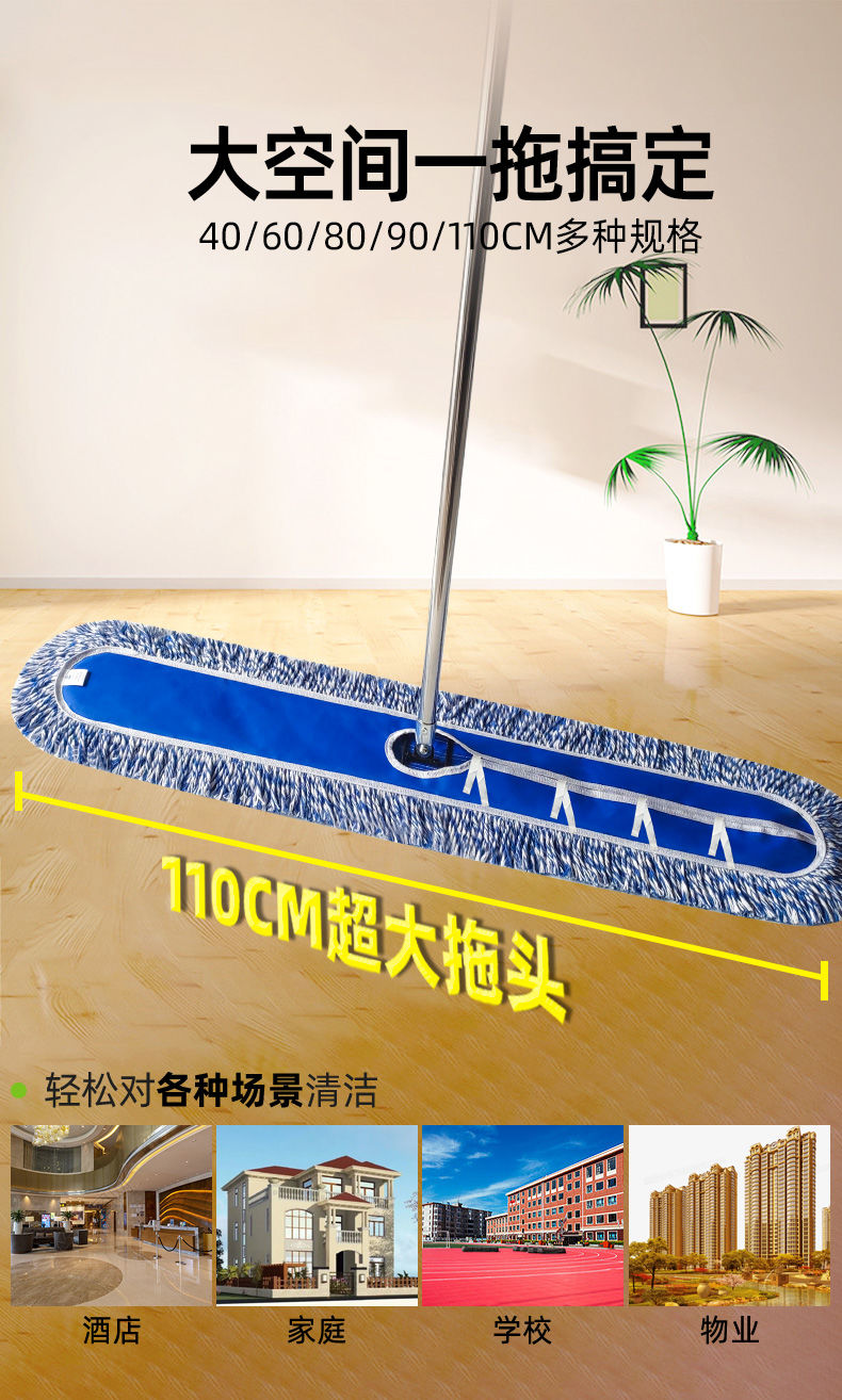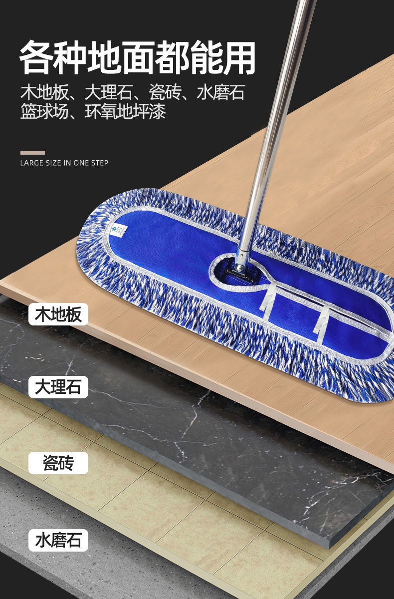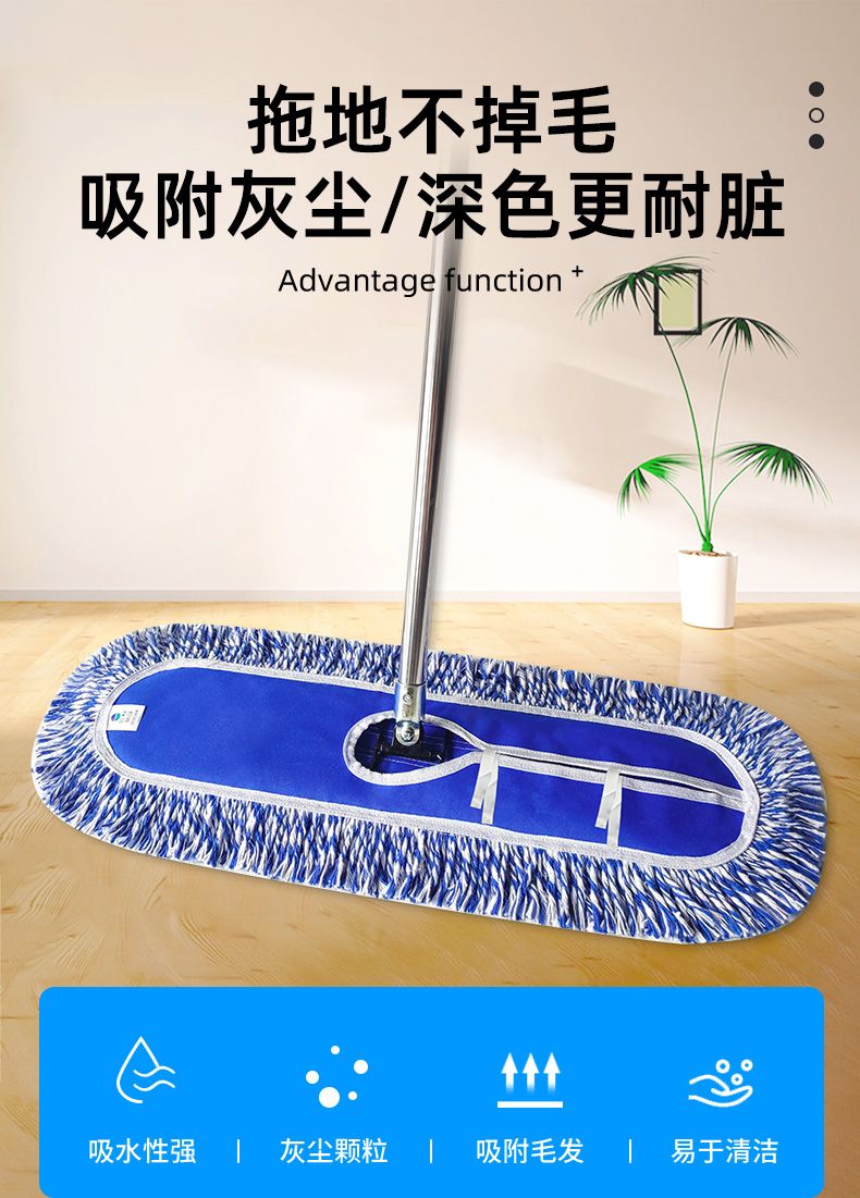 blue and white line thickened canvas screw luxury dust push mop mop extension rod large row mop canteen property thickened 40 CM complete set