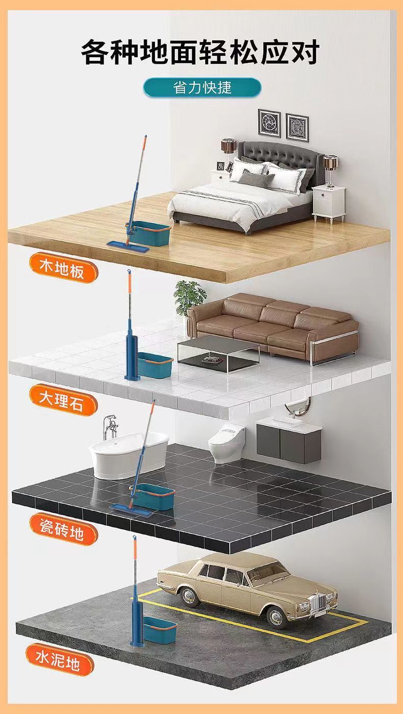 genuine large mop one-mop clean wet and dry dual-purpose lazy mop mop dormitory bathroom mop 42 CM flagship /1cloth] 128 thick rod double scraper