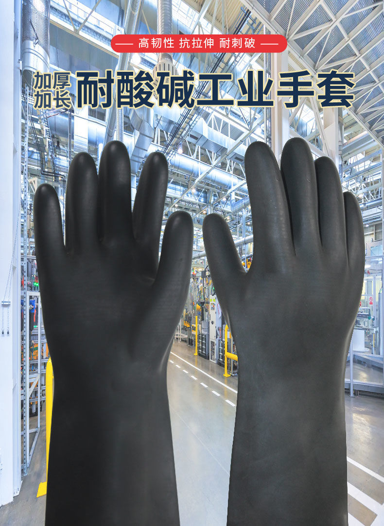 rubber acid and alkali resistant gloves industrial chemical anti-corrosion anti-fouling waterproof thickened and lengthened latex wear-resistant labor protection gloves 35 CM industrial acid and alkali resistant gloves (1 pair)