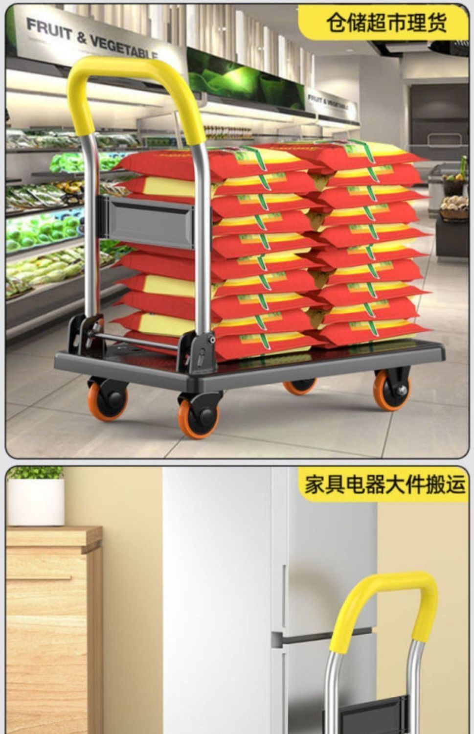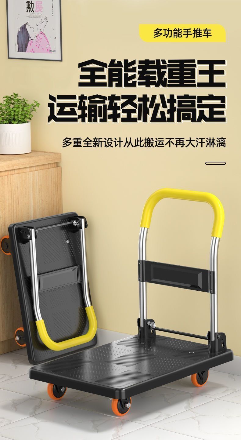 非常实用,能拉很多东西,质量还真不错,手推车非常结实,可以拉好多东西。材质很厚,载重没问题推起来平稳静音。按上四个轮子就可以用了,把手折叠打开都非常方便,四个轮子也很顺滑,