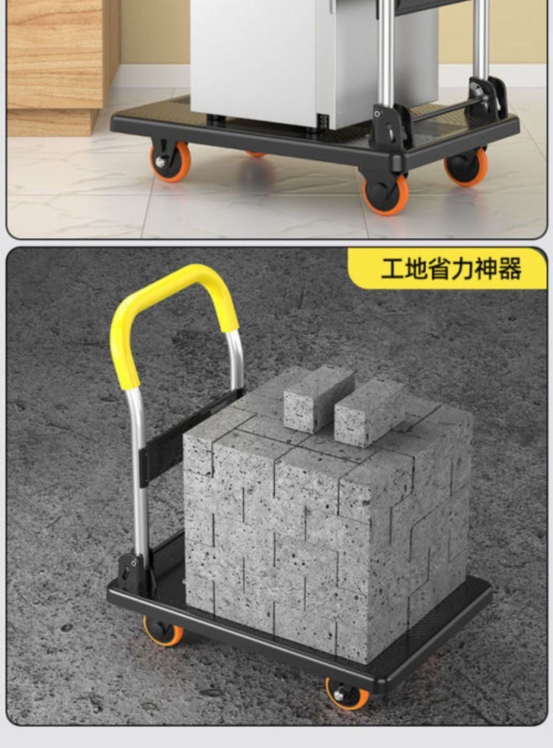 东西已收到,非常好用。承重能力强,搬运东西轻松很多,而且轮子很静音!拖起来一点也不费力,,承重强,轻轻松松就拖走了,物流也非常快,下次再来。