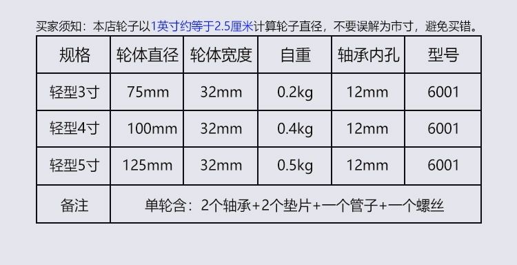 6寸铸铁胶轮收到了,厚实、做工好,配件全。