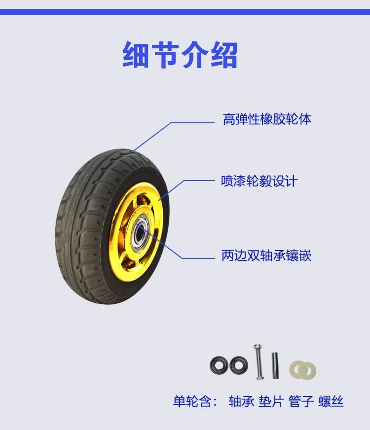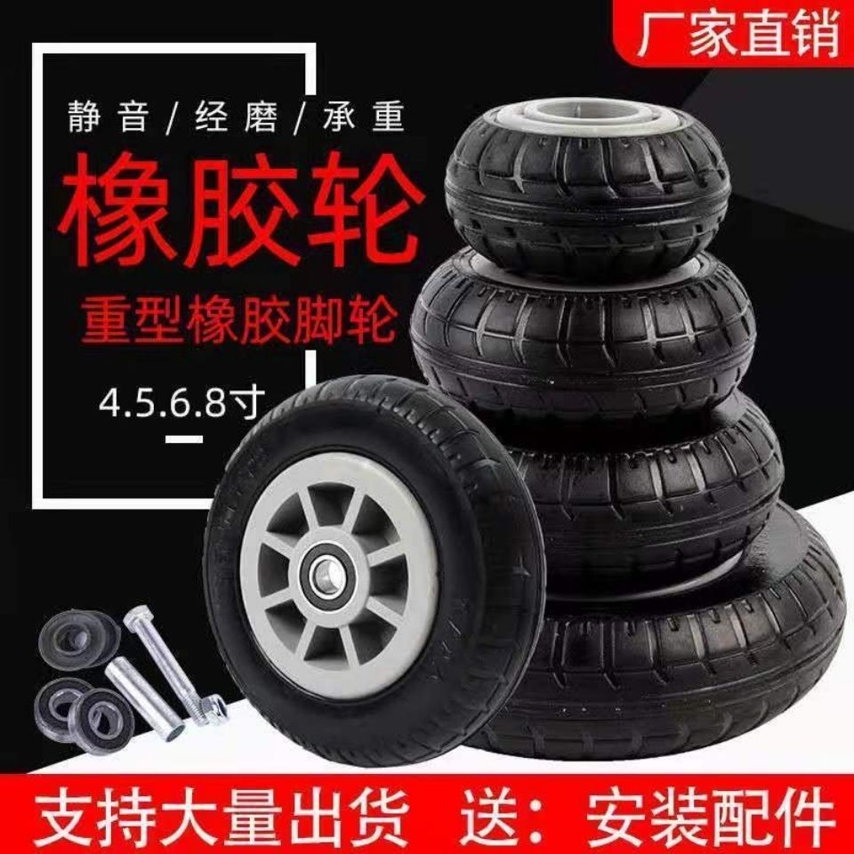 iron core rubber wheel 3456 inch 8 inch silent solid rubber industrial heavy duty wheel trolley flatbed trailer wheel flat medium 3 inch gold glue one with accessories