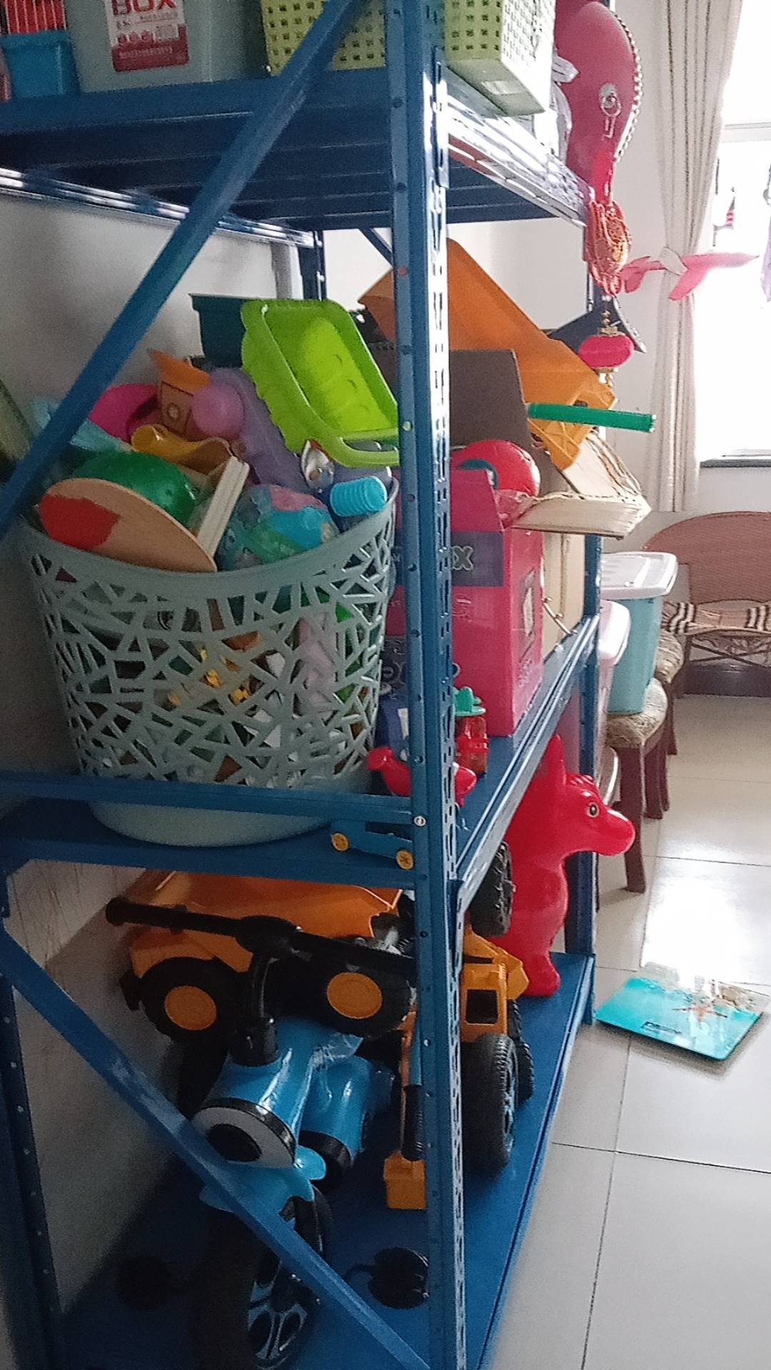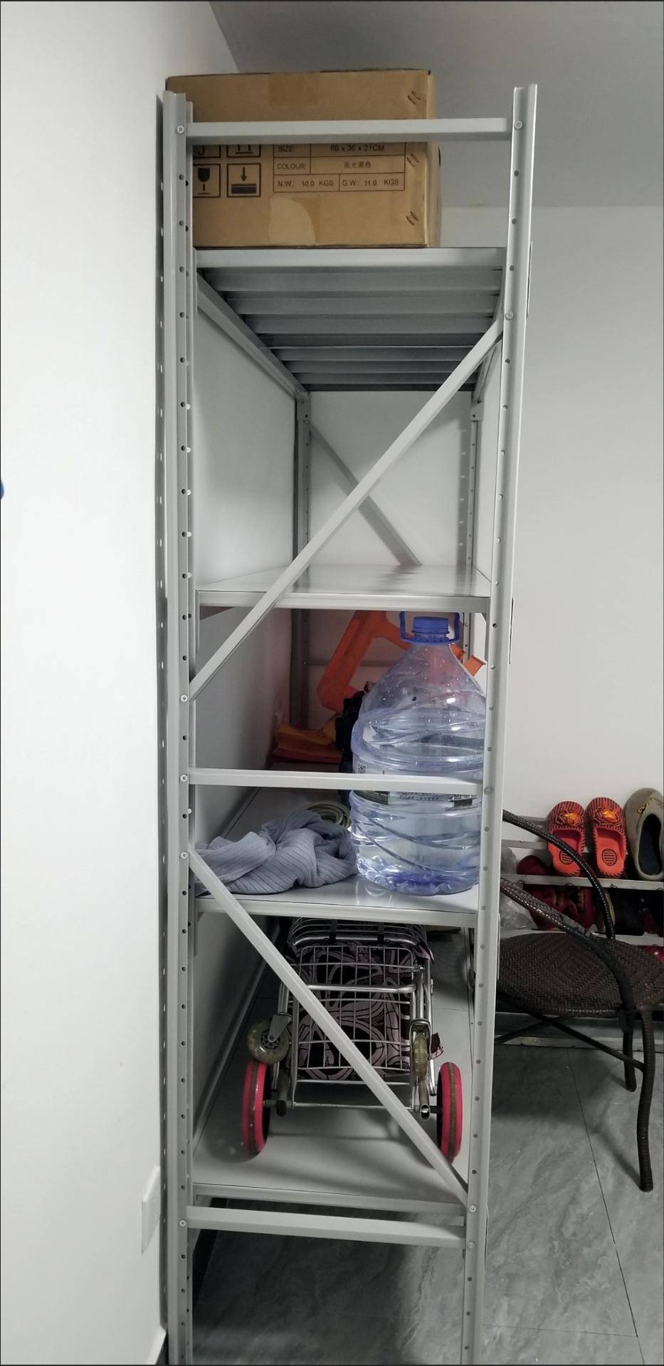 货架很好,组装需要用电起子就省力点。架起来还是很威武的。也比较实用。一个140的揪边上站上去架子还是很稳的。整体性价比可以。
