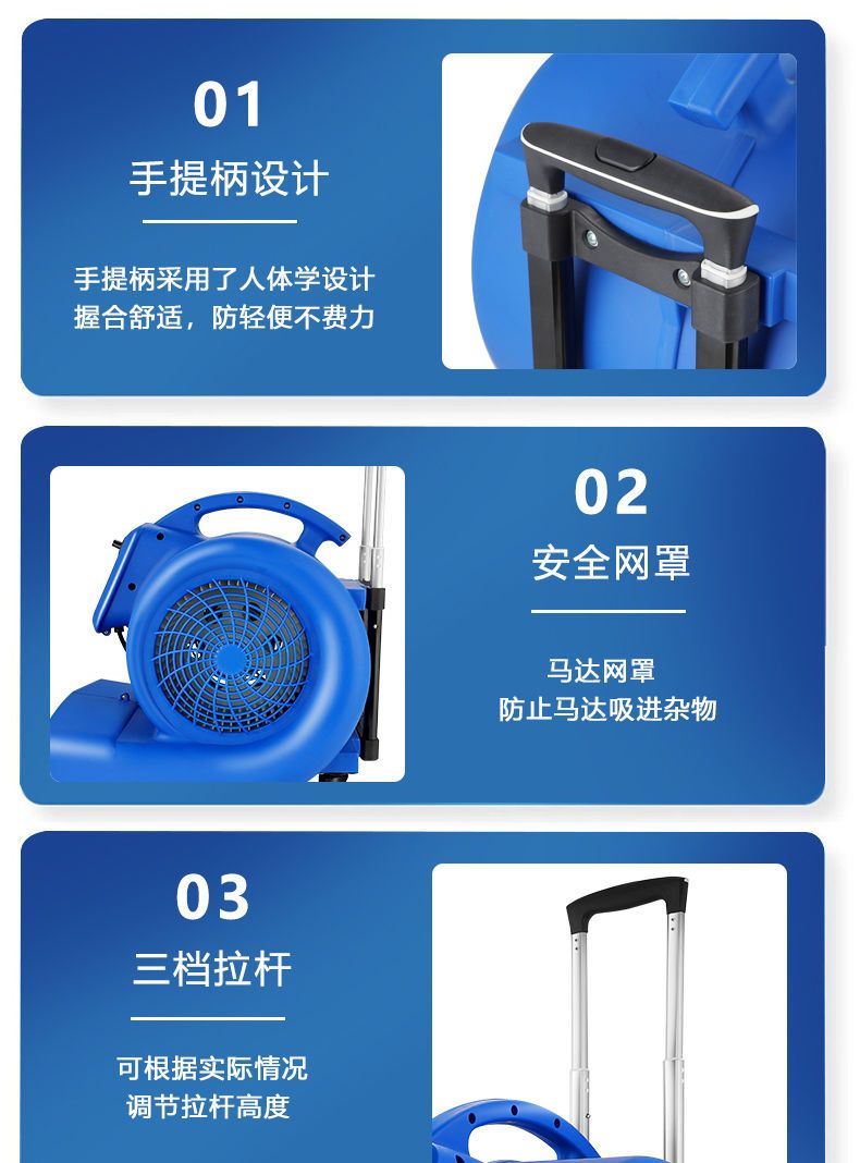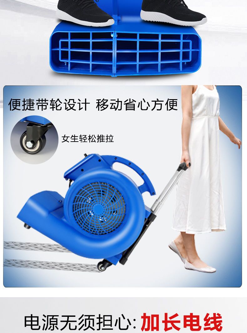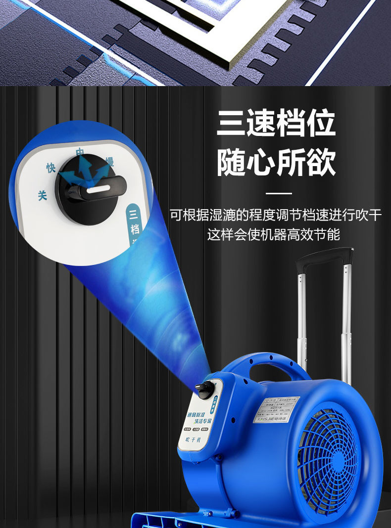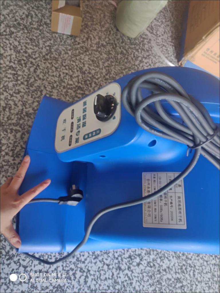 店家人好發貨及時物流快,收到的1000瓦大功率冷風商用低噪音吹地機與商家描述的一模一樣,質量好、大功率強勁電機、風力好大、效果好、可以快速吹幹、防止打滑、三檔風速可以自由調節、剛拖好的地很快就把地上的水分的幹幹凈凈的、伸縮拉杆、方便移動、價格親民真的實惠,直接好評,如果你是有需要那就入手吧!
