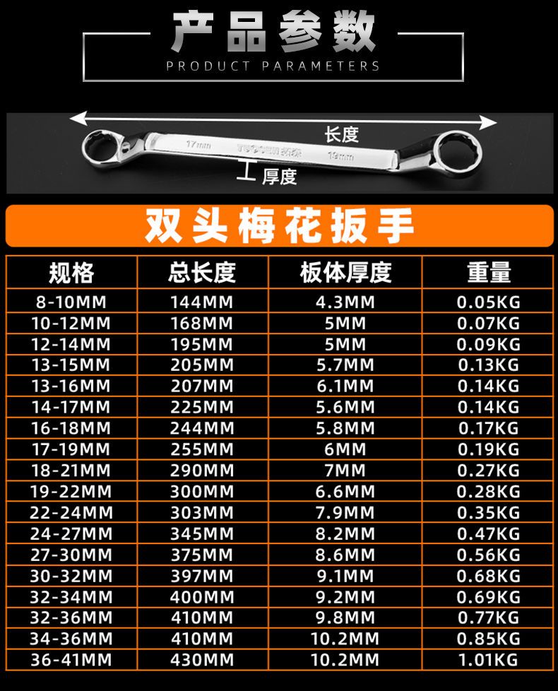 plum wrench auto repair glasses wrench mirror dual-use double-head plum wrench 1922 wrench tool set plum wrench 2 pieces 810 /1012