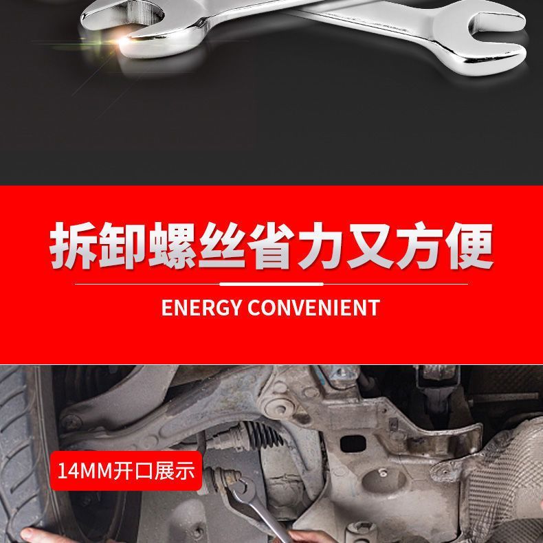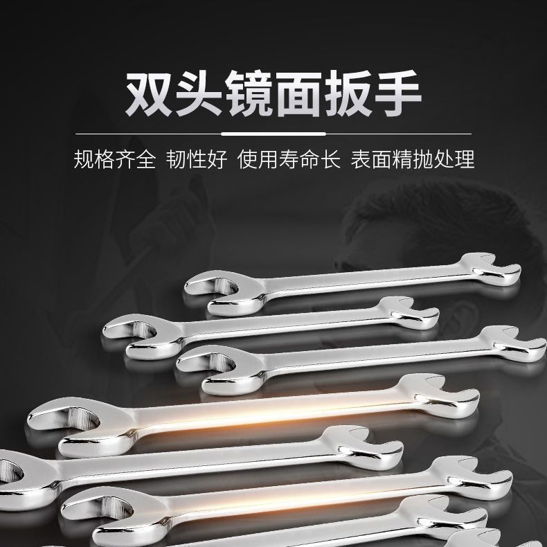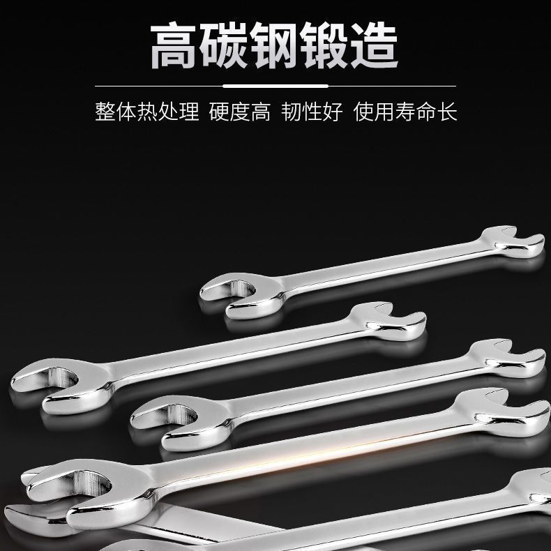 high-quality thickened high-carbon steel double-opening flat wrench 8-10 car repair wrench tool collection #mirror surface one dual-purpose large and small head open wrench# +four pieces [#6-12#] (see the picture for specific models)