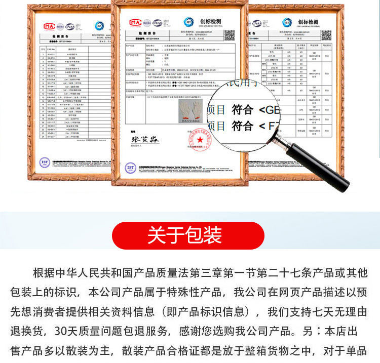 我是老顾客,他家手套我们已经是第四次回购了,做活动的赠品,好评如潮。他家东西,一如既往的让人放心。支持,感恩,祝福吧,其他的不多说了。
