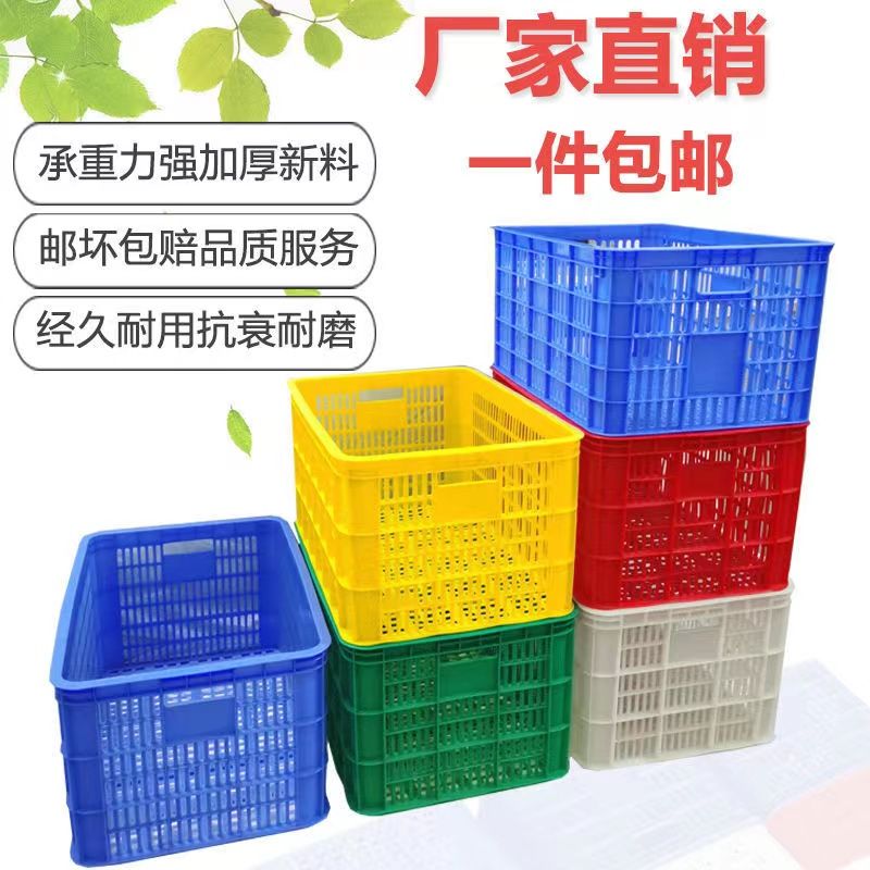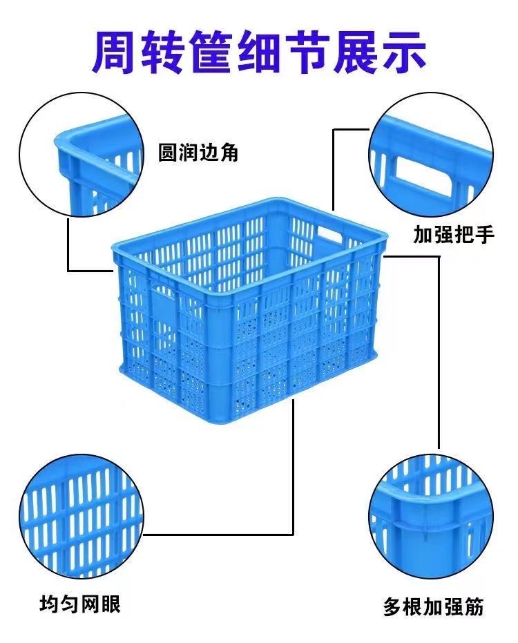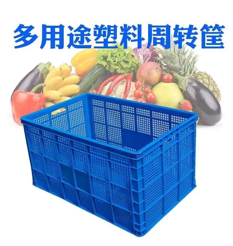 turnover basket plastic basket rectangular hollow basket plastic frame vegetable basket fruit basket large transfer basket storage turnover box [new material] +large eye basket 60-40-12 cm [white]