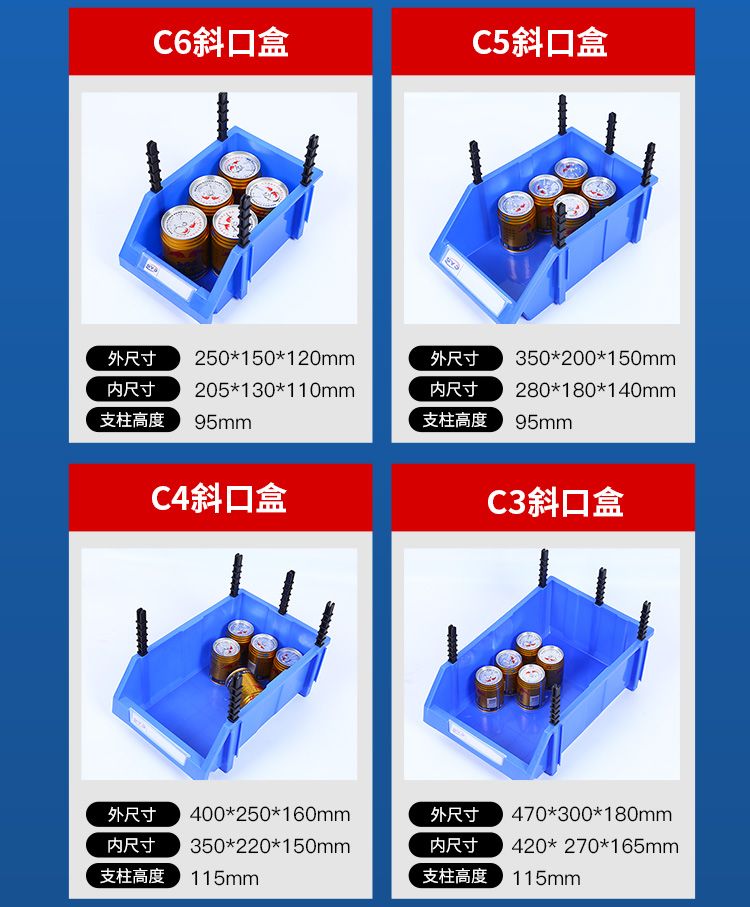 combined oblique parts box warehouse shelf tool box bracket plastic box rectangular hardware accessories material box C8【150*107*75】thickening +blue