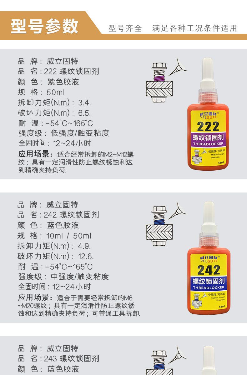 screw glue fixed anti-loosening special glue 222 242 243 263 271 277 thread locking sealant 222 low strength thin screws [50 ml】