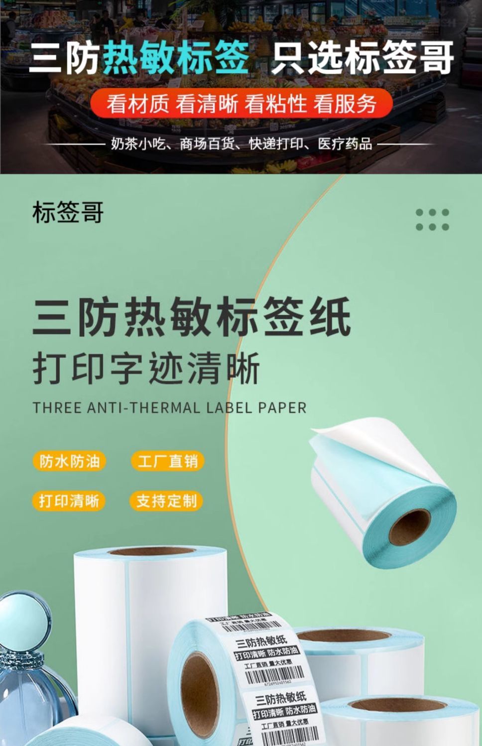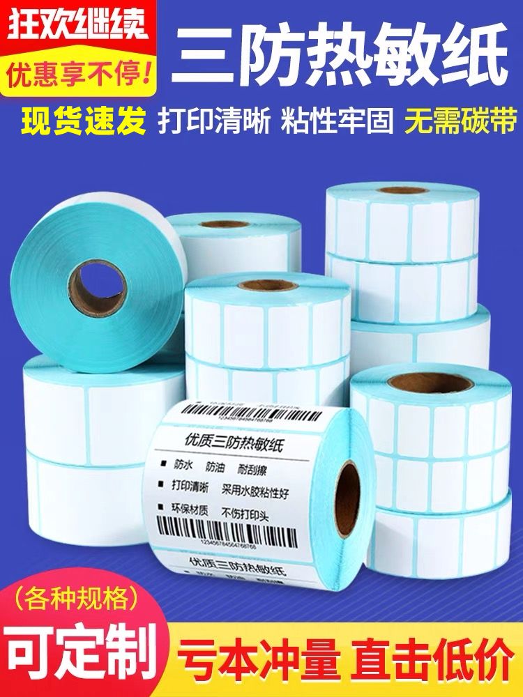 three-proof thermal label paper 70 20 30 40 50 60 80 90 100 milk tea shop barcode paper sticker 20 *10*2000open /roll single row