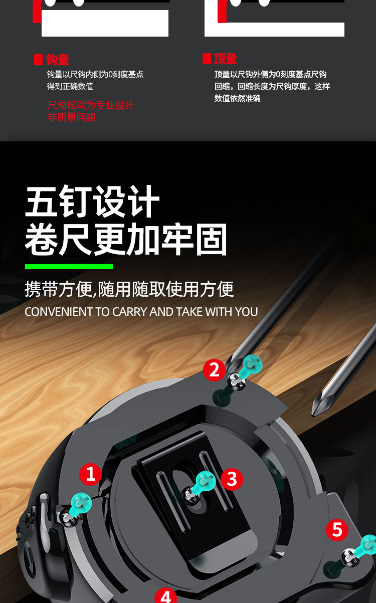 尺寸很规范,刻度很清晰,设计美观,经济实惠,手感舒适,回弹力强,尺条可以挑起3米,非常不错,还会再来购买