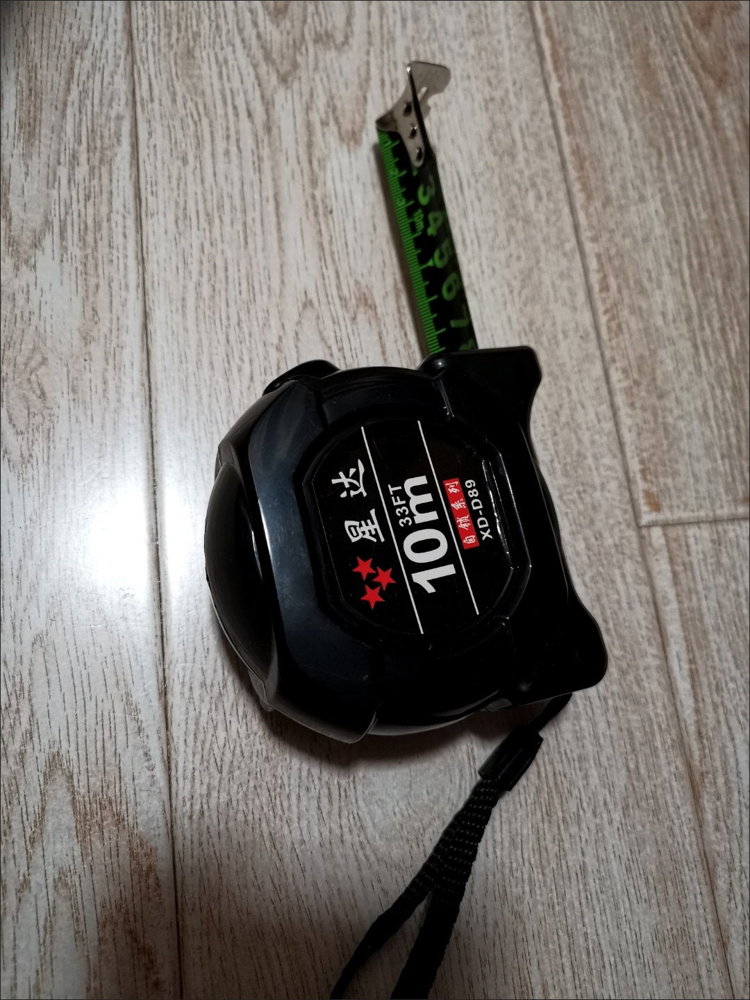 家里原有一把5米的卷尺(黄色的),质量很好,也是在拼多多上买的,已经是用了几年了,这次买的是黑色的,是10米的,盾量同样的好,买了值得!
