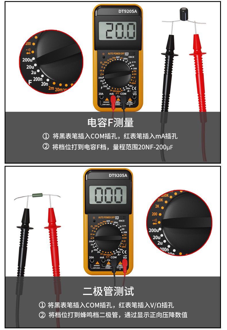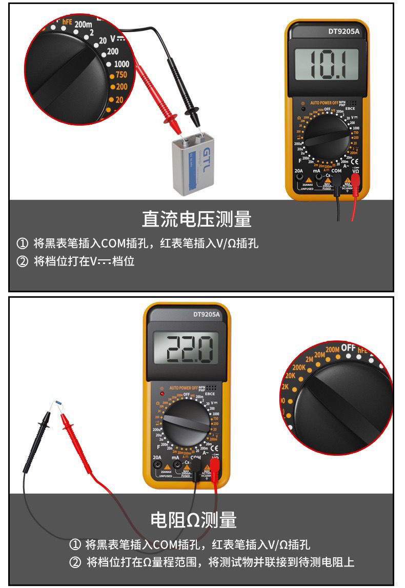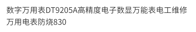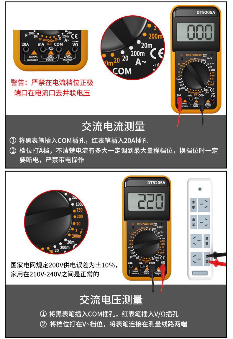 digital multimeter DT9205A high-precision electronic digital display multimeter electrician maintenance multimeter anti-burn 830 new anti-burn (9205) chinese panel
