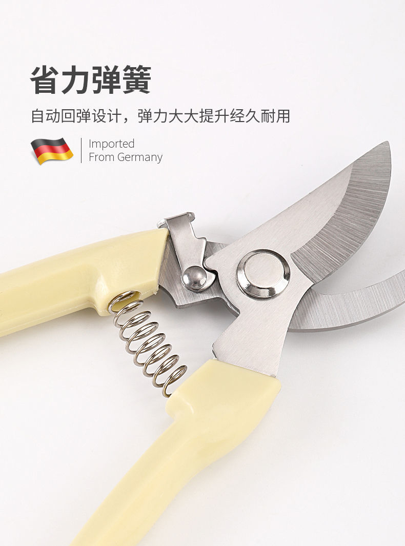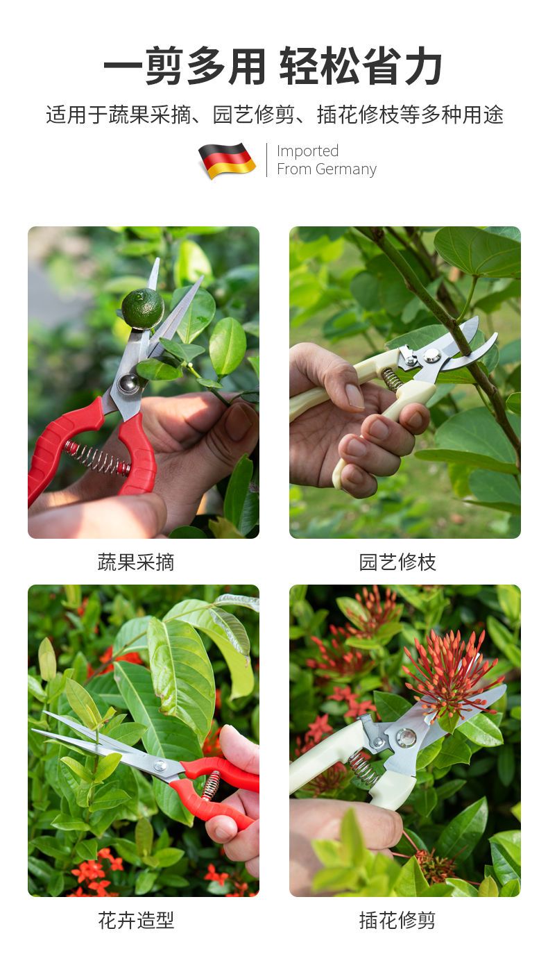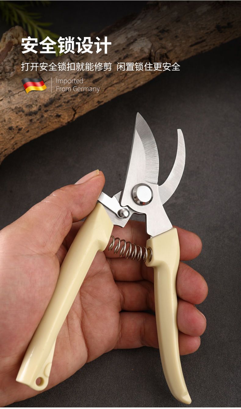 发货很快!收到很满意!做工很精细,不锈钢刀片,安全锁扣,手柄握着很舒服!使用非常方便。而且比实体店便宜很多,非常适合修剪花花草草!