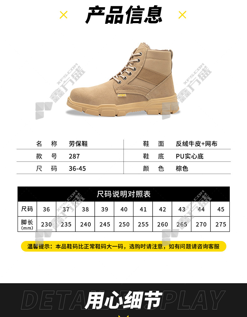old housekeeper suede leather pu solid bottom high top plus velvet cotton shoes anti-smash and stab work shoes size 44 287 36 /287