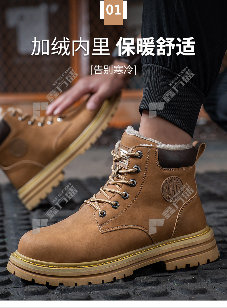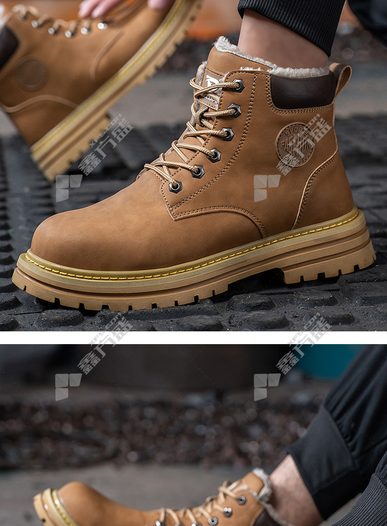 lao guanjia microfiber leather upper rubber outsole anti-smash and stab-proof warm high-top work shoes size 45 326 37 /326