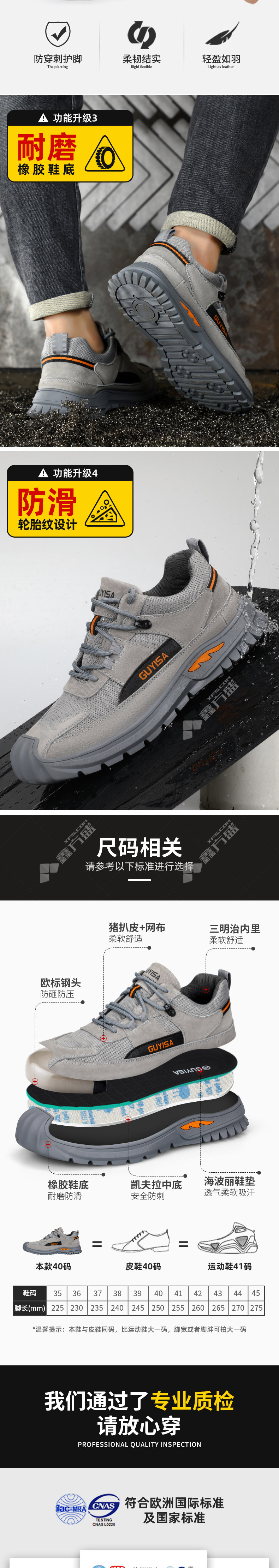 guisa 2055 four seasons anti-smash and anti-puncture safety labor shoes 40 size brown 2055 35 size brown /2055