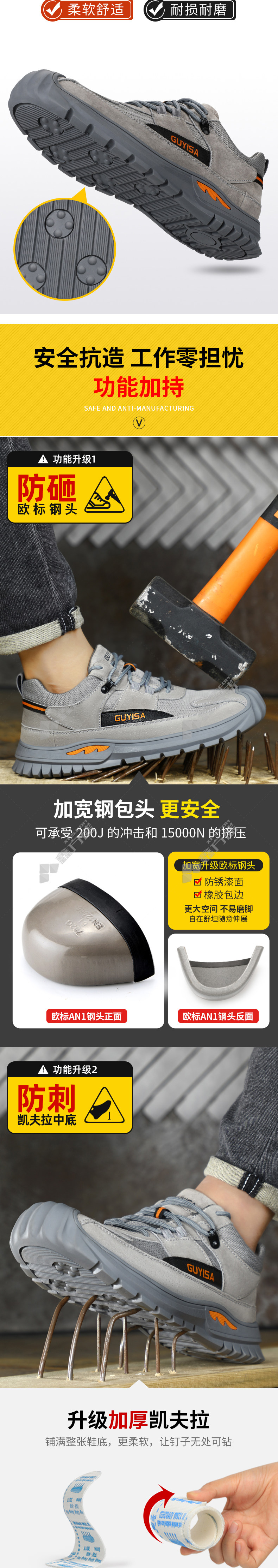 guisa 0255 four seasons anti-smash and anti-puncture safety labor shoes 42 size gray 0255 37 size gray /0255