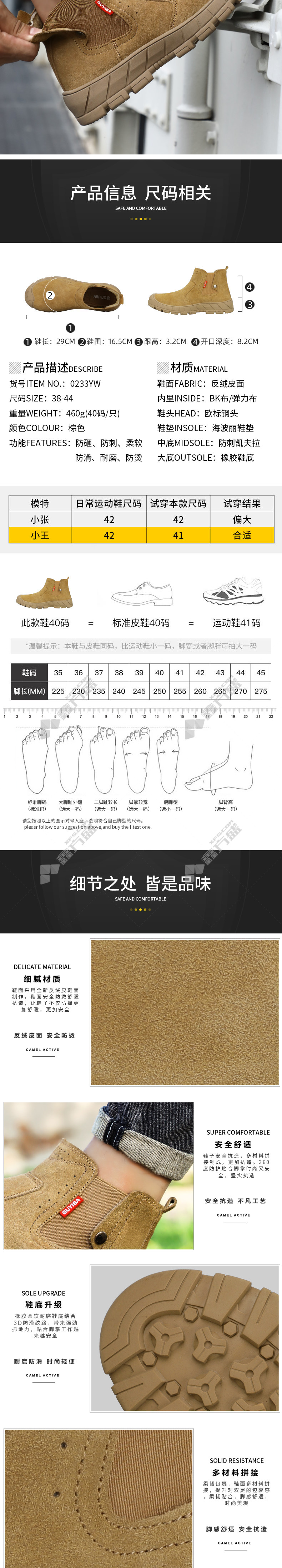 guiza 0233 YW four seasons suede welder anti-smash and anti-puncture labor shoes 46 code brown 0233YW 37 code brown /0233YW