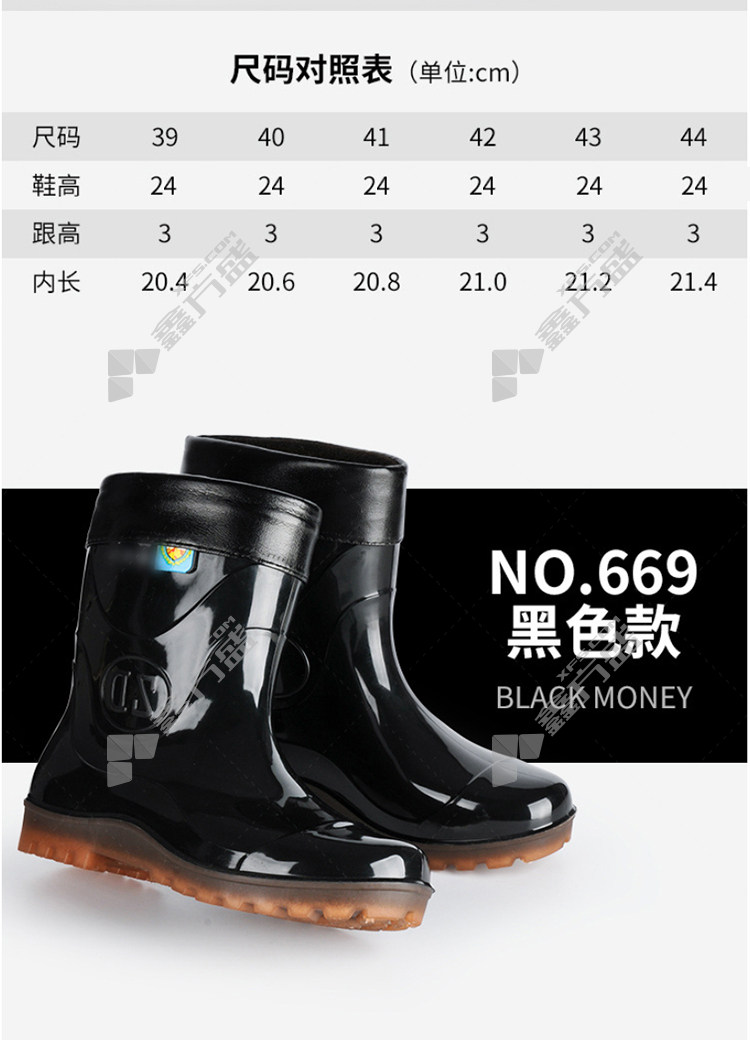 shanghai brand low tube anti-slip and wear-resistant PVC rain boots with cotton 669 669 42code black 669/39code /black